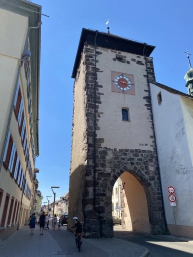 30분 정도 걷다 보니 큰 도로 건너편에 오래된 시계탑이 있는 성벽이 보인다. 아주 오래전엔 저 아치형의 성문으로 마차가 다녔을 법하다. 길을 따라 들어가니 펼쳐지는 알록달록 파스텔 색상의 예쁜 건물들이 줄지어 있다. 롯데월드 어드벤처 놀이공원에 들어온 기분이다. 하늘은 파랗고 건물들은 예쁜 컬러의 옷을 입고 창문마다 늘어뜨린 꽃들에 아이들도 이 도시의 매력에 푹 빠진 느낌이다. 바닥은 울퉁불퉁 옛날 돌바닥이라 자전거 타면 엉덩이가 깨나 아프겠다.