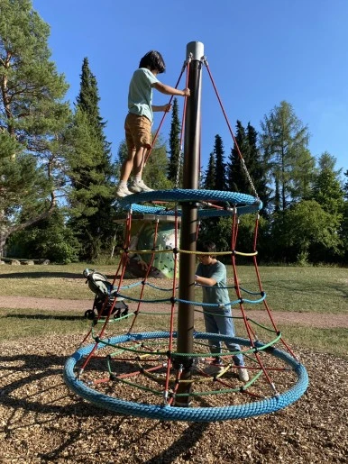 이제 달달한 간식도 먹었으니 아이들과 약속했던 놀이터가 있는 공원으로 향했다. 넓은 공간의 Kinder Spiel Platz (어린이 놀이터)에 정말 다양한 놀이 기구들이 있었다. 놀이 기구들도 독창적인 조형물을 이용한 듯 디자인이 특이했는데 특별히 눈에 띈 건 바닥이었다. 잔디와 흙이 부분부분 섞여 있고 놀이 기구 아래엔 우드 칩 (wood chip)이 소복이 깔려 있었다. 놀다가 떨어지거나 넘어져도 충격을 완화해 줄 수 있어 보였는데 뭔가 정형화되어 있는 한국 아파트 단지 내 우레탄 바닥의 놀이터를 생각하니 안타까운 생각이 들었다. 아이들이 노는 동안 우리는 민경 씨가 집에서 미리 준비해 온 Lunch box를 세팅했다. 독일 사람들은 보통 점심으로 샌드위치를 많이 먹는데, 가격에 비해 내용물이 심플하고 우리에게 익숙한 달달한 소스도 없이 정말 드라이하기 때문에 보통 외출할 땐 도시락을 챙겨 나온다고 한다.