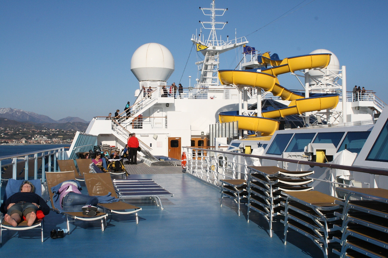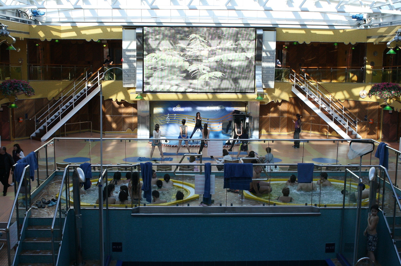 호화롭게 준비해 준 크루즈의 시설들을 최대한 잘 활용해야 비용이 아깝지 않으니 배에서도 열심히 놀았다. 상영되는 영화를 확인하고 극장에 가거나 뮤지컬이나 댄스쇼 등도 볼 만하다. 카지노에 가서 탕진잼도 느껴보고 운 좋게 돈을 좀 딴다면 작은 규모지만 면세점이 있으니 쇼핑도 가능하다. 290미터 길이에 폭이 35미터의 배를 천천히 구경하고 산책하는 것도 당시 나에겐 큰 태교 운동이었다. 배안에는 4개의 수영장과 5개의 자쿠지가 있다. 뱃속의 아가를 생각해서 수영장에 뛰어들진 않았지만 따뜻한 자쿠지에 몸을 담그고 청량한 지중해의 햇살을 즐기는 것만으로도 더 이상 바랄 게 없는 소중한 태교의 시간이었다.