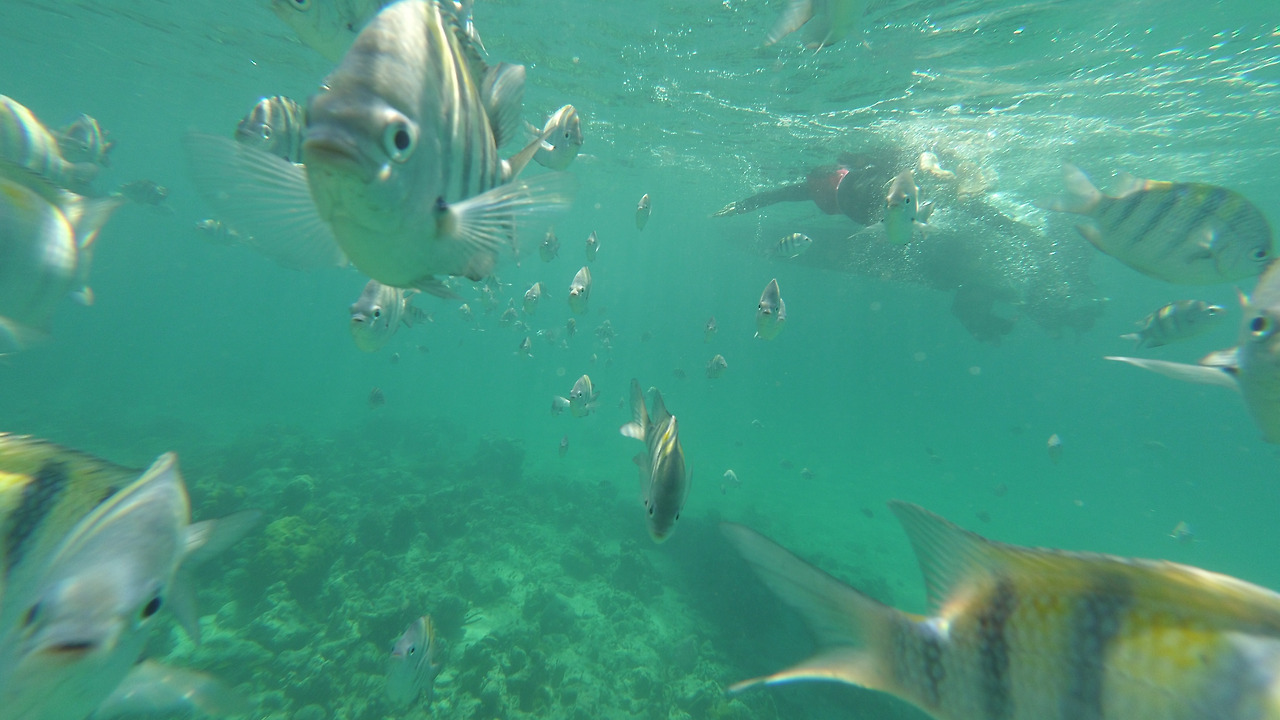 스노클링을 신청하긴 했지만 난 사실 물을 무서워한다. 수영은커녕 튜브에 의지해 물에 들어가는 것도 고개를 절레절레 흔드는 물 겁쟁이다. 그런데 '이 먼곳 카리브해까지 왔는데 그냥 갈 수는 없지' 하며 덥썩 바다에 들어가겠다고 했다. 사실 진짜 이유는 아이들 때문이었다. 겁쟁이 엄마가 되고 싶지 않았다. 멋진 엄마가 되고 싶었다. 그리고, 엄마가 수영하는 모습을 보며 아이들도 물에 대한 겁이 사라지길 바라는 마음이었다.