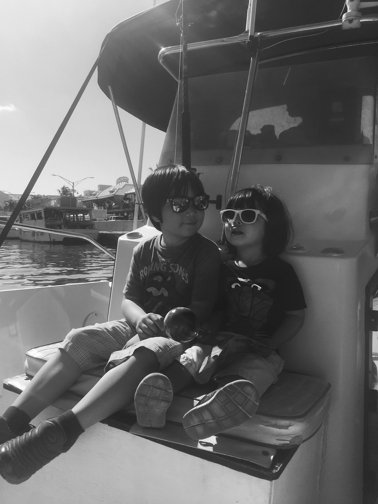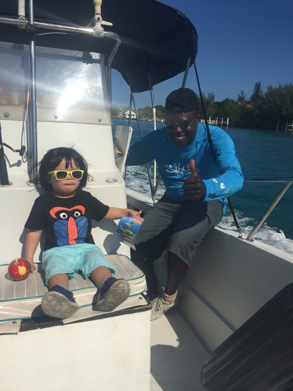 낫소에 도착하면 항구 근처 카리브해에서의 스노클링이 가능하다는 정보를 들었다. 보통은 미리 알아보고 예약을 해야 하지만 우리는 예약 없이 직접 부딪혀 보기로 했다. 아니나 다를까 크루즈에서 내리니 삐끼들이 몰려든다. 우리는 그들을 멀리하고 낫소(NASSAU) 워터 페리 서비스센터로 갔다. 아이들과 함께 움직이는 거라 안전이 가장 중요하기도 하고 혹시나 바가지요금에 속을 지도 모른다는 우려 때문이다. 보트를 타고 카리브해 주변을 둘러보고 스노클링도 할 수 있는 보트를 소개받았다. 깜한 피부에 키도 길쭉한 보트 선장이 하얀 이빨을 드러내며 우리를 환영했다. 보트에 올라타니 눈을 뜨기도 어렵게 강렬한 태양이 내려짼다. 선글라스를 씌워주니 신이 난 아이들은 보트가 속력을 내기 시작하니 움찔 긴장하기 시작했다.