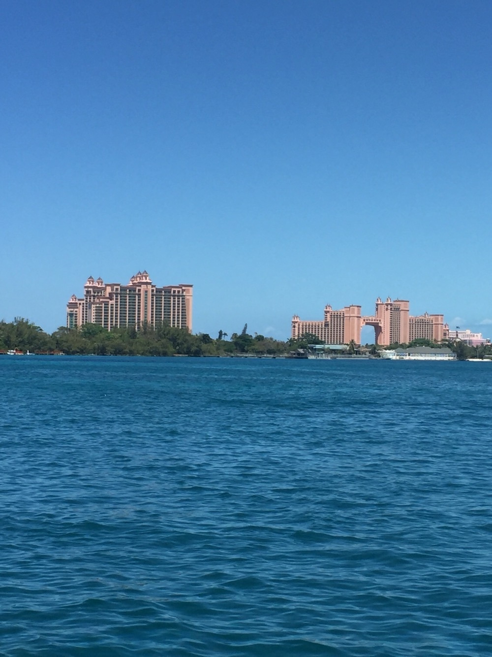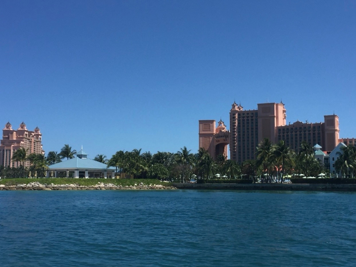 보트가 조금 속력을 내 나오니 떠나온 해변 주변으로 백만 불짜리 저택과 별장들이 파노라마처럼 펼쳐진다. 저 멀리 아틀란티스 호텔도 보였다. 마이클잭슨이 묵고 난 뒤 저 호텔을 매매하려고 노력했지만 실패했다는 이야기가 전해오는 그 호텔이다. 규모도 크지만 상어를 볼 수 있는 워터슬라이드가 있는 곳. 물론 비싸기도 하고 워낙 규모가 커서 가볼 엄두도 못 냈지만 보트를 타고 둘러보는 것만으로도 만족스러웠다.