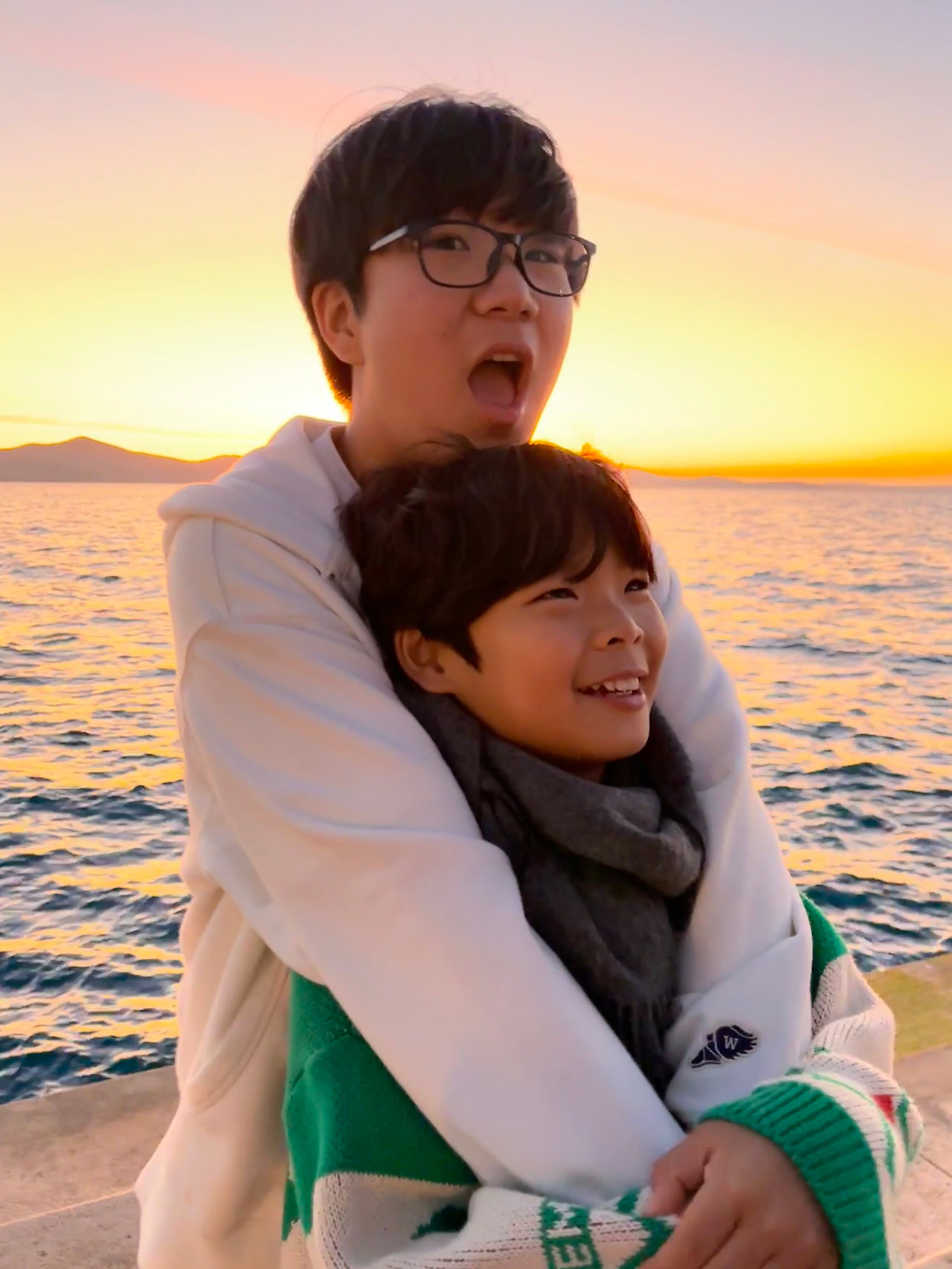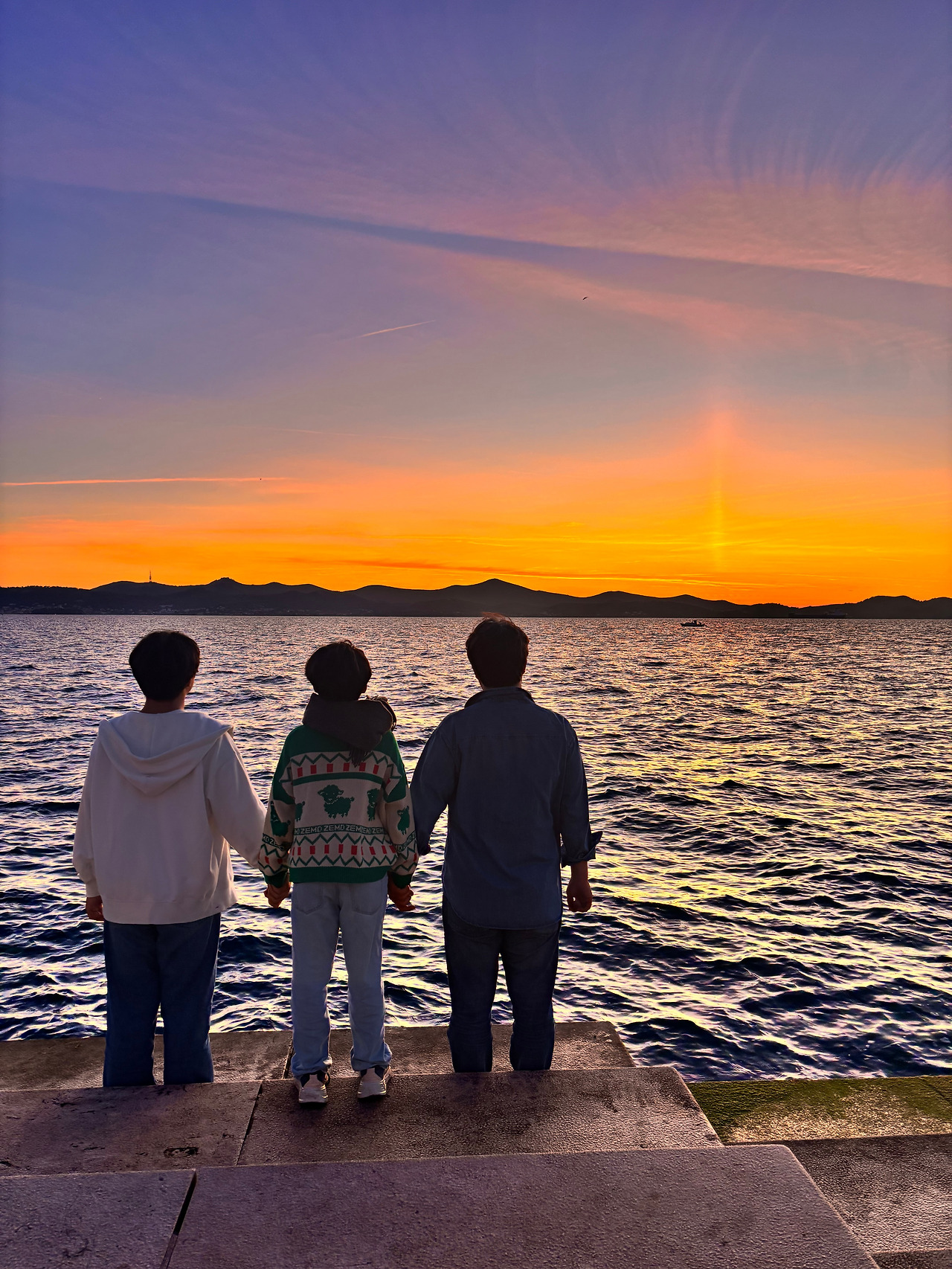아름다운 아드리아해의 일몰은 우리 가족에게 서로 안아주는 마법을 보여주었다.