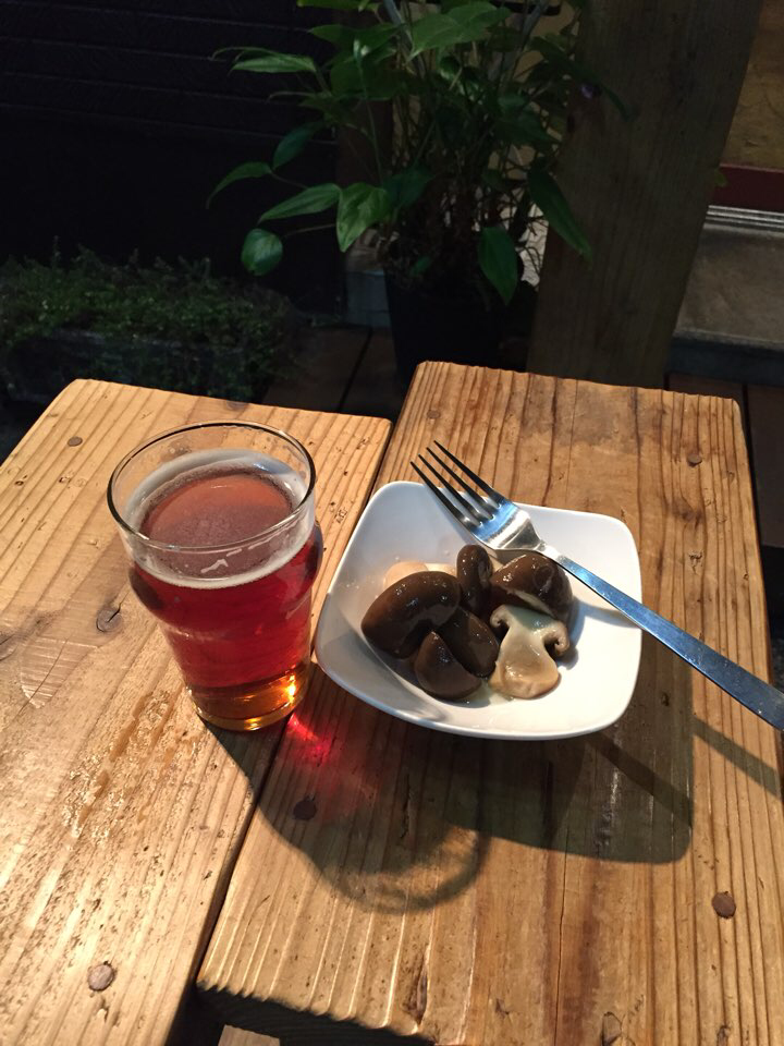 이름도 기억 안나는 맥주 한 잔과 버섯 안주를 주문했다.