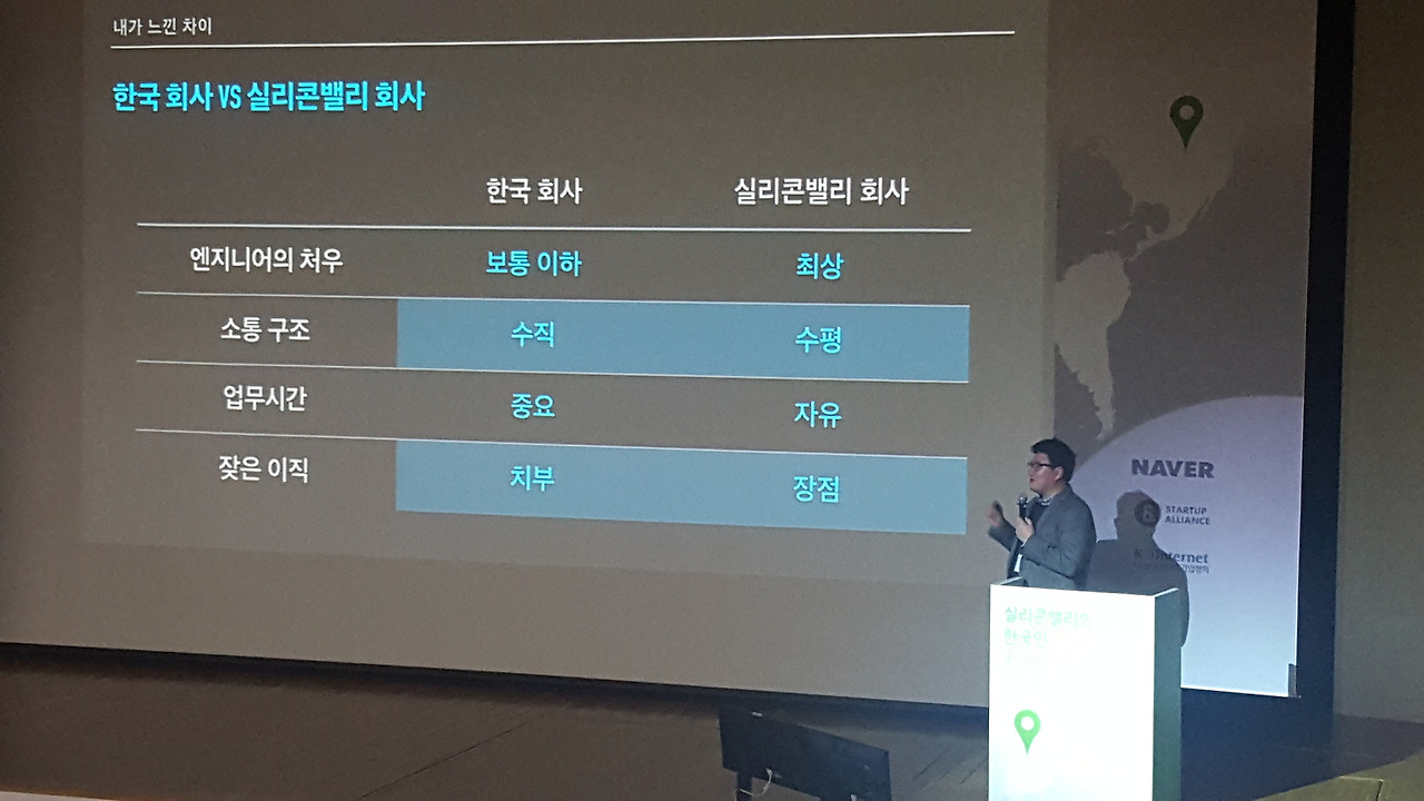 실리콘밸리는 지방대 출신에 영어도 못하는 그를 실력대로만 받아들였다. "실리콘밸리의 경쟁력은 다양성이다. 다양한 아이디어가 나오고, 다양한 해결책을 만들고, 서로를 존중해준다." 그는 운이 나쁘지 않은 것도 사실이라고 했다. "지방대학 출신 가운데 지레 겁먹은 사람도 많다. 내가 이러니깐 안될거다 라고 안해본 사람들이 많다. 대학교 고등학교 동기들 중 이런 사람들이 많다. 스스로 테두리를 가둔 경우가 많은데 제가 말하고 싶은 것은 그렇지 않아도 된다는 것이다"