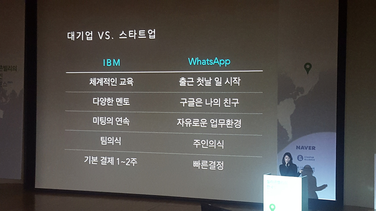 실리콘밸리의 한국인 컨퍼런스 미니를 다녀왔다. 이 행사는 미국 실리콘밸리의 아이티 기업에서 일하는 한국인 엔지니어들이 한국 젊은이들에게 그 곳의 문화와 커리어를 소개하는 행사다. 지난해와 올해 본행사에 이어, 비가 내리는 오늘, 미니 컨퍼런스도 열렸다. 미국의 혁신기업인 우버나 테슬라 등에서 일하는 이들까지 온다고 해서 분당의 그린팩토리를 찾았다.