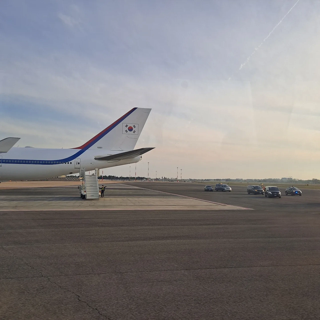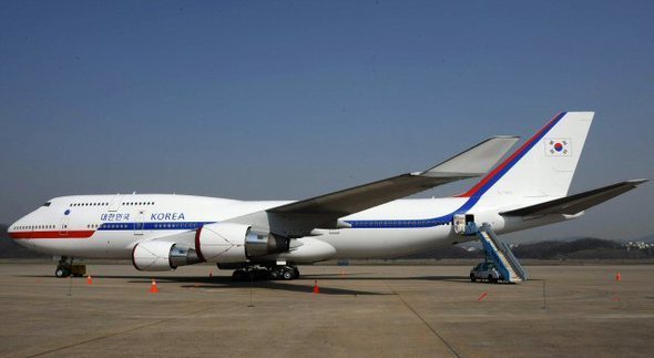 대통령 전용기는 탑승교가 아닌 트랩을 타고 탑승한다. 대통령이 비행기에 오르기 전 손을 흔드는 장면을 찍기 위해 만든거 아닌가 싶기도 하다.