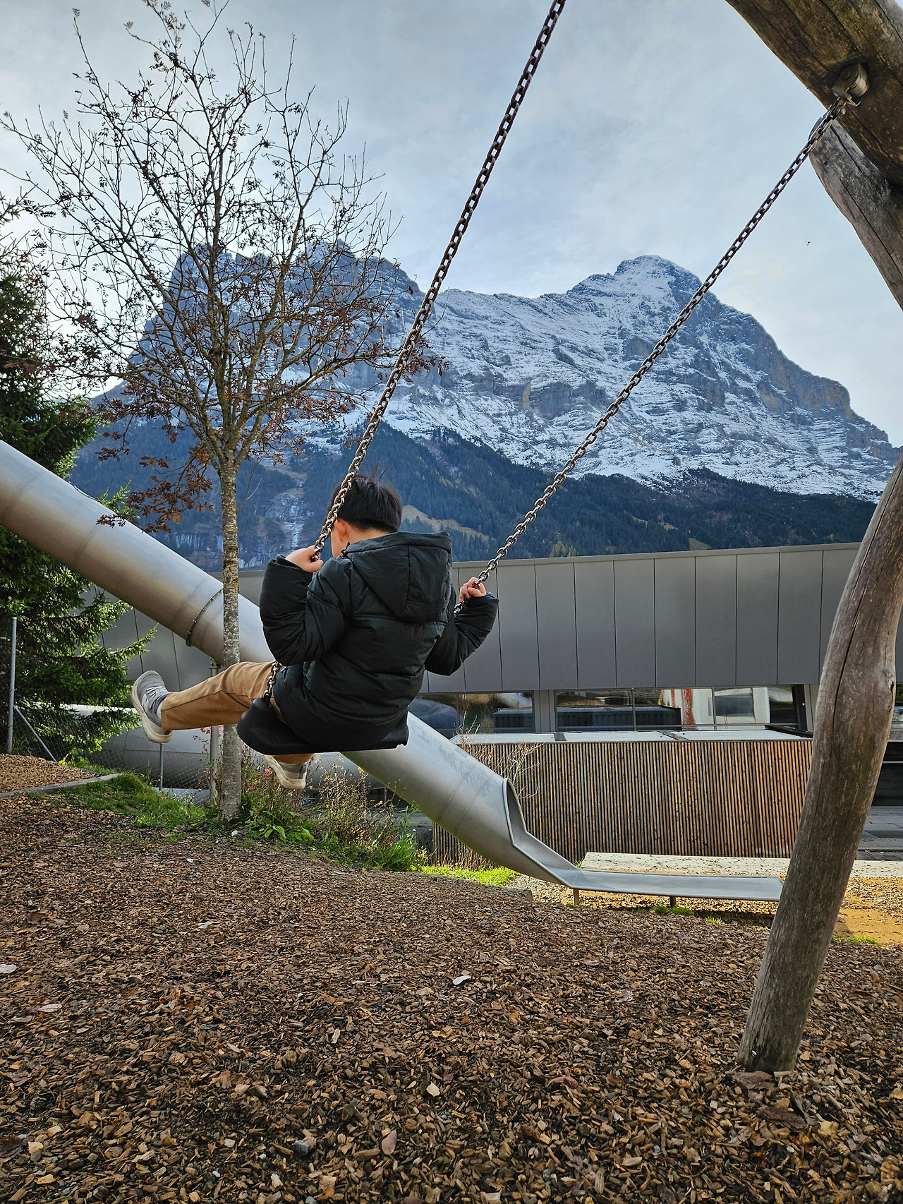 그린델발트에 있는 놀이터에서도 아이는 한참 놀았다. 아이거 북벽을 보며 놀 수 있다.