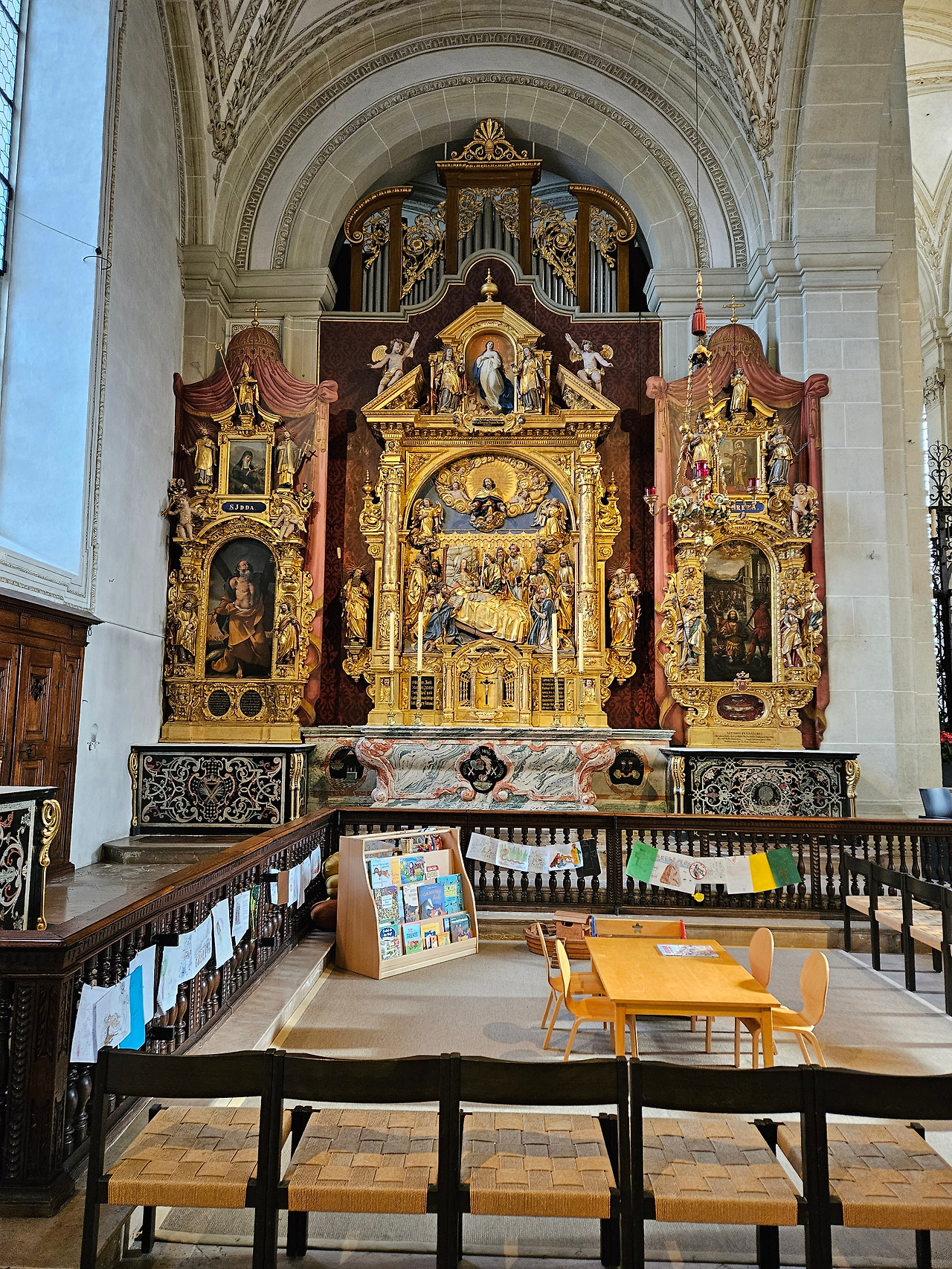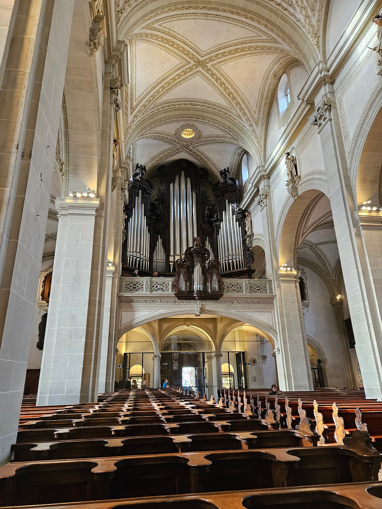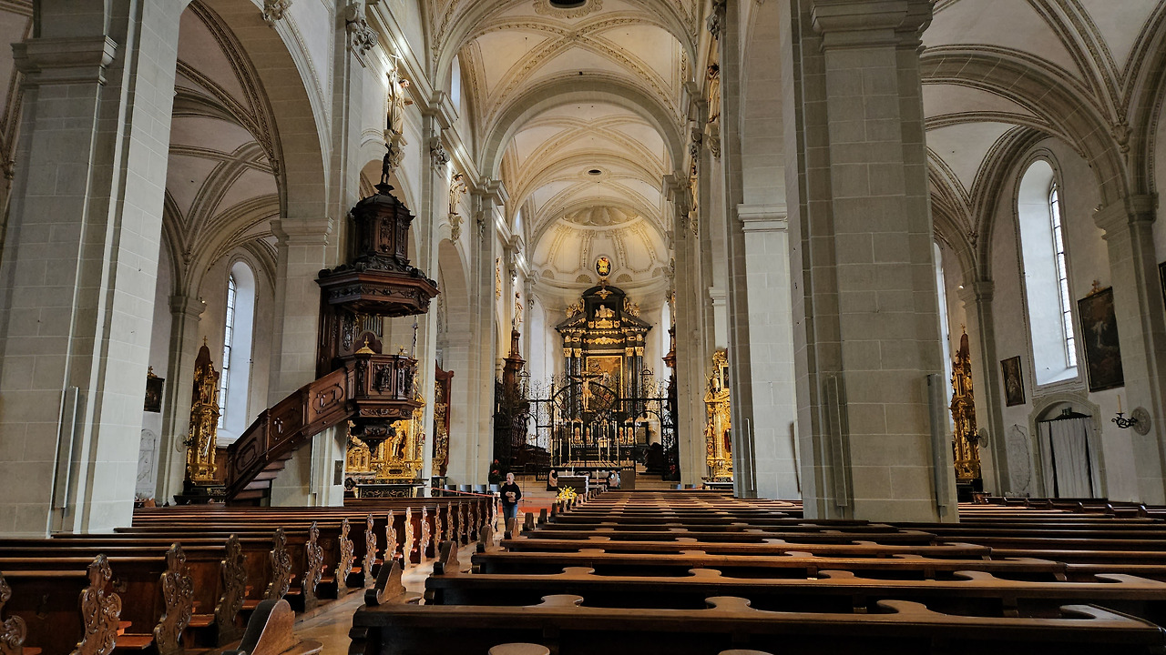 성당 뒷편 성가대 자리에 파이프 오르간이 보인다. AI가 알려주길, 1640~1650년에 제작된 4,950~6,000개 파이프(최대 10m 길이, 380kg 무게)로 유럽 최대급이며, 루체른 음악제 등에 사용된다고 한다.