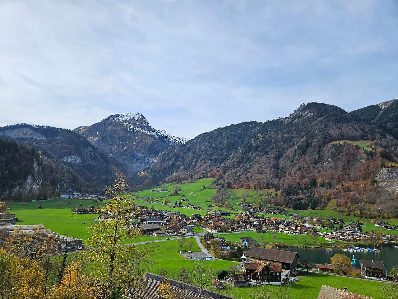 성당 바깥에서 바라본 마을 모습. 그린델발트와 융프라우 등에서 그림 같은 알프스 모습을 실컷 보고 왔지만, 이 곳 전경 역시 무척 아름다웠다. 엄청나게 높은 산이 주는 장엄함도, 알프스의 하이디가 있을 것 같은 마을 전경은 아니었지만, 평화로운 모습에서 눈을 떼기 힘들었다.