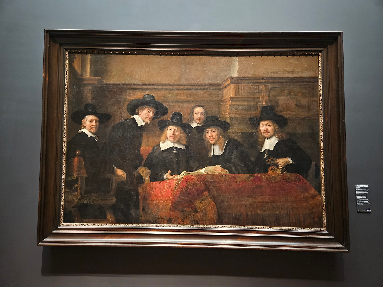 야경을 구경하고 본격 갤러리 탐사에 나서면, 나를 쳐다보는 눈들에 깜짝 놀라게 된다. 암스테르담 직물조합의 검사관들. 렘브란트는 검사관들이 있는 방문을 열고 들어갔을때 모두가 침입자를 쳐다보는 구도를 그려냈다. 네덜란드는 1600년대와 1700년대 번영을 구가하고 있었는데, 그것은 상인들의 힘이었다. 이들은 많은 작품을 그려낼수 있는 그림 시장의 큰 손이었다. 당시 이들을 그린 작품들을 보면 검은색 옷을 많이 입고 있는 게 눈에 띈다.