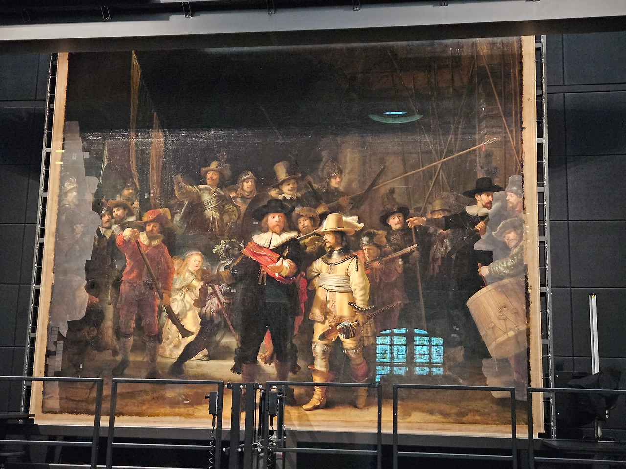 이 미술관의 대표작인 렘브란트의 '야경'은 2층으로 올라가, Gallery of Honour를 통과하면 눈앞에 나타난다. 생각했던 것보다 커서 놀라고, 또 유리 보호막 밖에서만 관람할 수 있는 것에도 놀란다. 영국 내셔널갤러리에선 유리 보호막 없이 그냥 작품을 가까이서 볼 수 있기 때문에.
