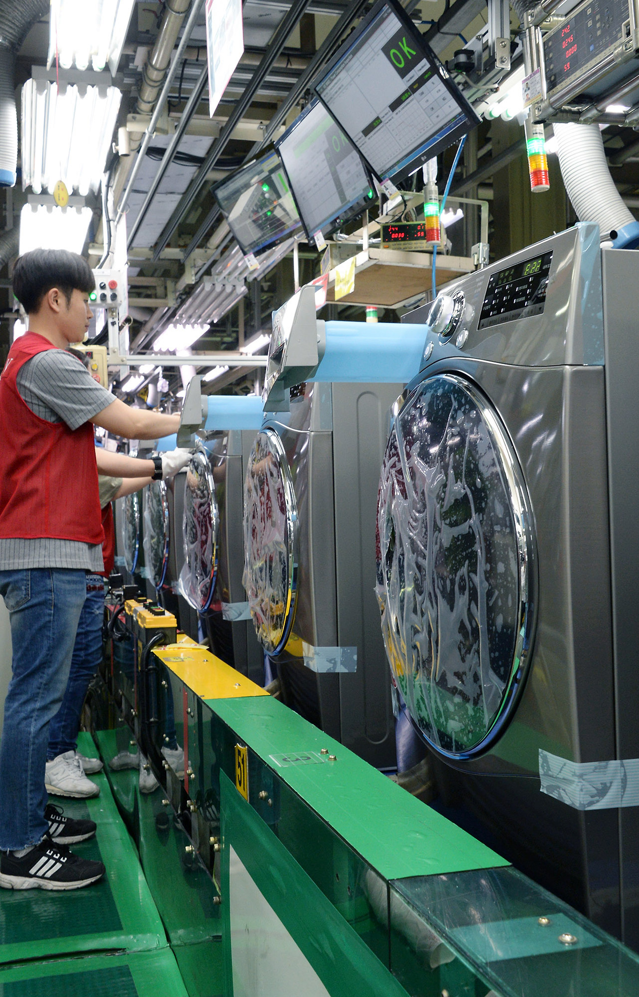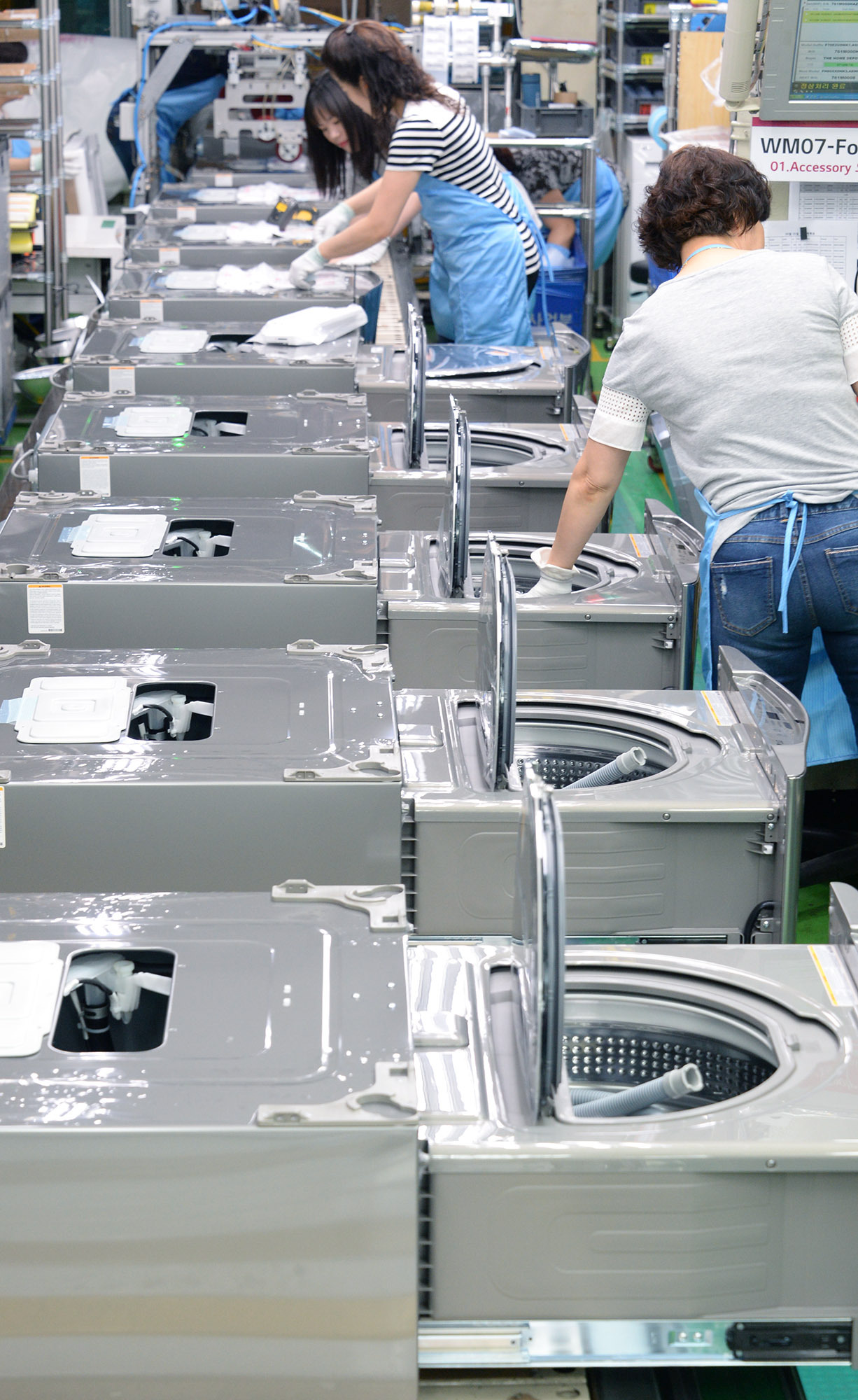 지난달 31일 서울에서 KTX를 타고 내려가 경남 창원에 있는 엘지(LG)전자 리빙어플라이언스사업부 공장을 찾았다. 창원2공장은 엘지전자의 세탁기, 건조기, 청소기, 스타일러(의류관리기) 등을 생산한다. 생산라인과 제품신뢰성 시험실을 둘러봤다. 시험실은 500대 정도의 제품을 계속 돌리며 가혹실험을 하는 중이다. 시험실 관계자는 "25년동안 시험하며 저장된 데이터를 바탕으로 새 제품을 실험한다"고 했다. 축적된 데이터는 품질과 혁신의 힘이 된다.