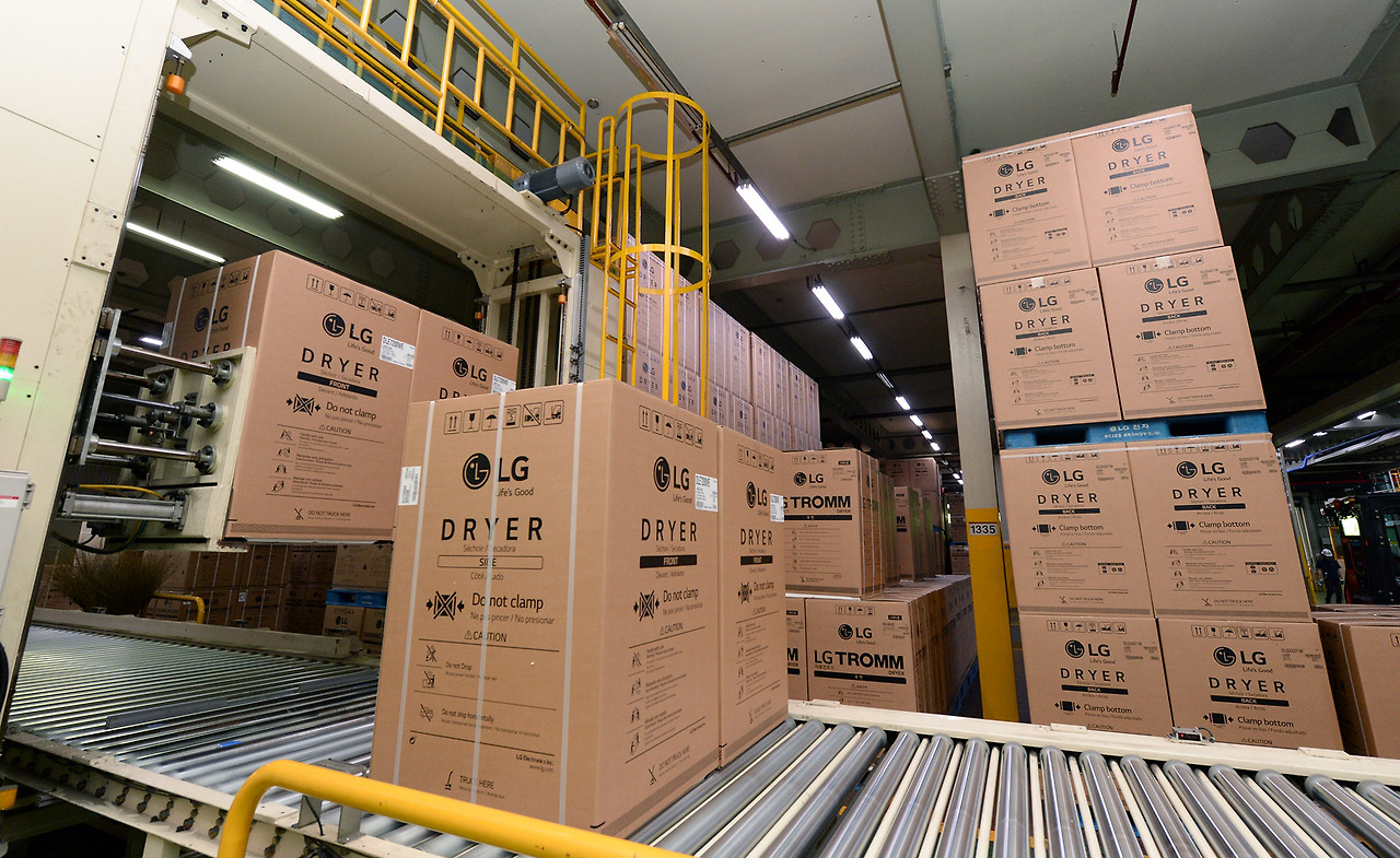 생산라인 소개를 맡은 정나라 리빙어플라이언스사업부 차장이 공장에 들어서자 처음 보이는, 쌓여있는 부품들을 가리키며 말을 이었다. “대형 부품은 30분, 중형 부품은 2시간, 소형 부품은 4시간 단위로 공장에 입고된다. 부품을 쌓아놓지 않고 그때그때 공급받는다. 부품을 들여오기 위해 하루에 5t 차량이 950대가 들어오고, 이차들도 25분 내에 부품 하차를 끝내고 나가 물류대란이 없다.”