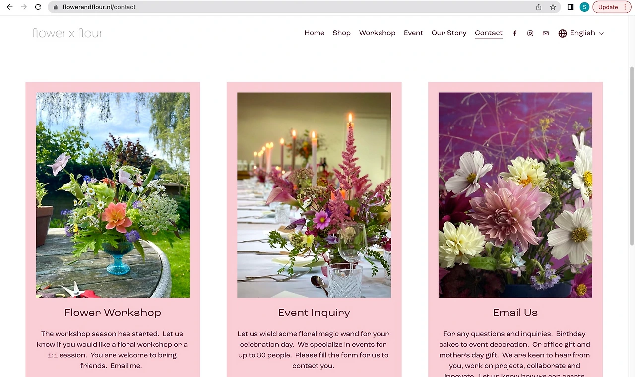 어차피 나의 꽃집은 부업으로 시작한 거라 매장 같은걸 꾸미는데 투자할 여력도 경험도 없었기에 이런 트렌드는 나한테는 기회였다. 난 알고리즘의 숲에 숨어서 취미와 부업 사이를 탐구해보고자 온라인 꽃집을 시작하기로 했다. 처음엔 인스타그램 계정을 열고 부지런히 꽃꽂이를 해서 사진을 찍어 올리며 소셜미디어 안에서 플로리스트로서의 나란 존재에 대해 스스로 덜 멋쩍어 지기 위한 노력을 했다. 하지만 SNS 만으로는 부족했다. 누군가가 찾아주고 좋아해 주고 지불까지 해야하는 거라면 부업이라도 홈페이지 제작은 피할 수 없는 숙제였다. 남을 위한 디지털 마케팅을 세고 세게 해왔지만 내 홈피를 만드는 건 사실 완전 새로운 일이었다. 늘 주변에서 날 도왔던 수십 명의 디지털 팀, 디지털 에이전시와 IT 담당자 없이 나 혼자 이걸 우짜노..