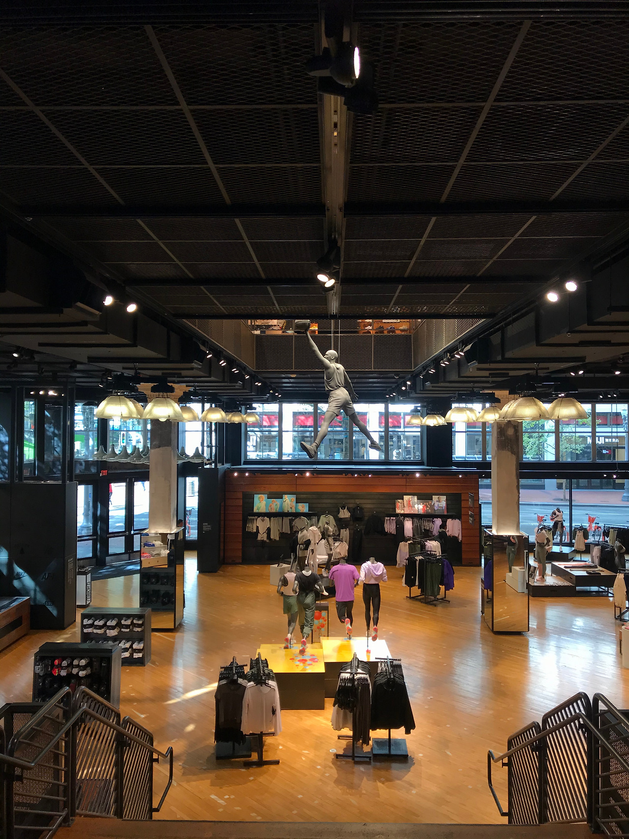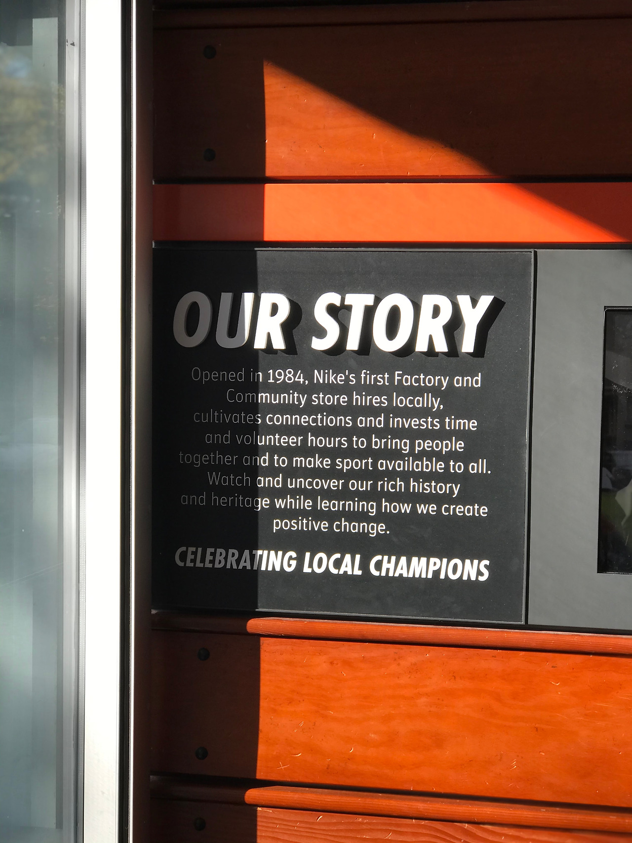 나이키 최초의 아울렛인 포틀랜드 커뮤니티 스토어는 자신들의 뿌리가 로컬에 기반하고 있다 선언한다. 여타 도시에 있는 팩토리스토어와 구별되는 가장 큰 차이점은, 바로 지역민들을 고용하며 지역조직에 꾸준한 기부를 진행하고 있다는 점이다. “Celebrating local champions”라는 문구가 매장 입구에 써져 있는 이 매장은 포틀랜드의 다운타운에서 조금 떨어진 곳에 위치하고 있었다. 그러나 이 매장은 지역민들이 사는 거주지역에 잘 녹아들어 있었으며, 주민들의 건강한 체육생활을 지원할 수 있도록 기본적인 라인의 상품들과 아울렛으로 이월된 재고들이 많이 구비되어 있었다. 여기에서 볼 수 있었던 많은 상품들 덕분에 다운타운까지 가지 않더라도 충분히 즐거운 쇼핑을 경험할 수 있는 곳이었다.