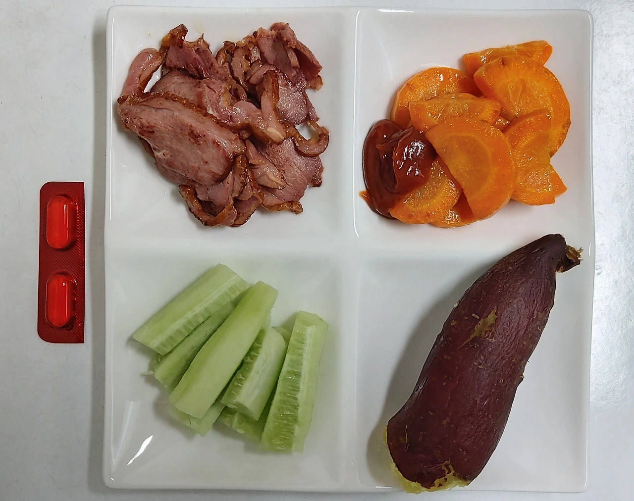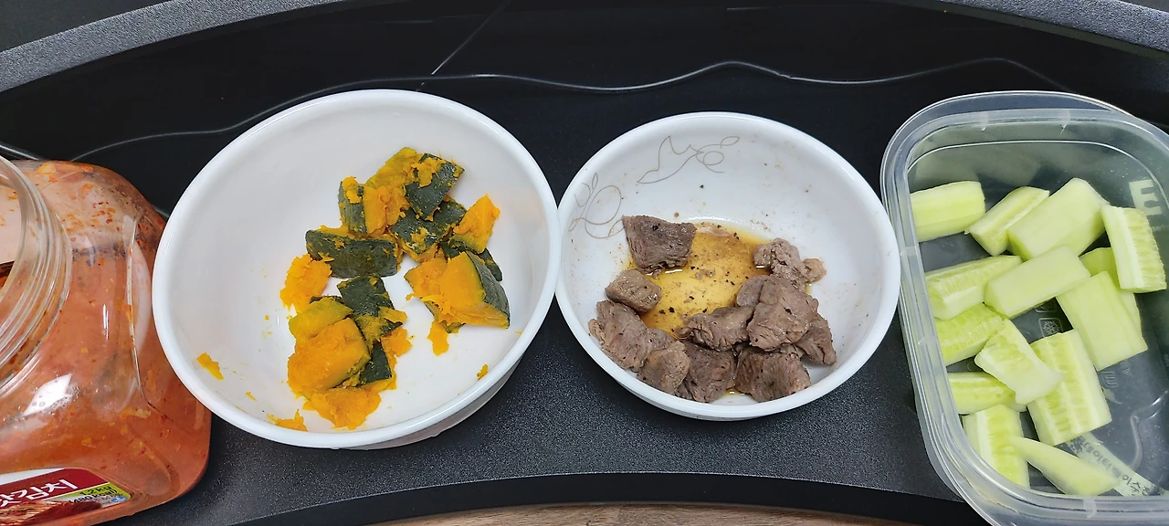 접시가 작아서 고구마도 생전 처음으로 반 개만 담았다는...