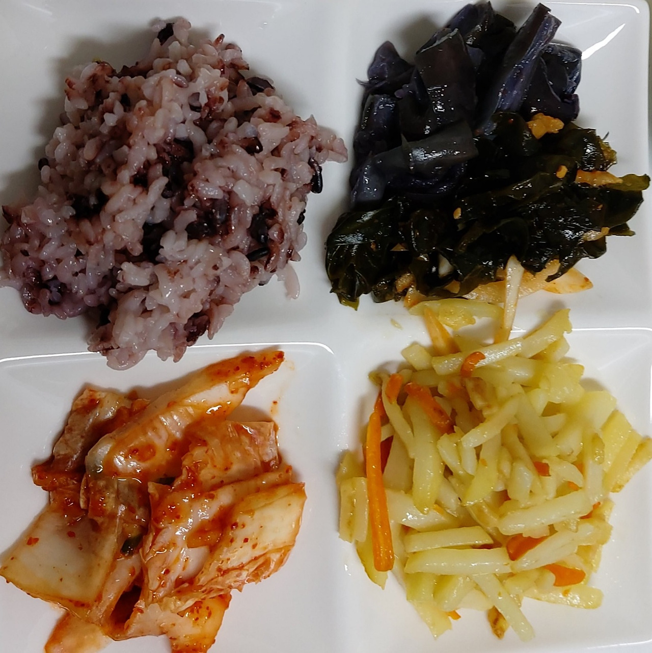 그제 저녁과 같음 : 밥 / 미역 / 감자 / 김치 + (사진에 없는 소고기국을 한 대접 먹음)