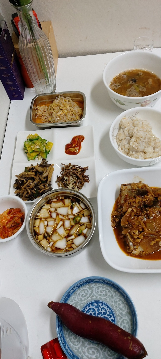 이 두 장의 사진이었는데, 친구들의 반응은 내가 정말로 밥을 해먹는 사람이라는 게 너무 놀랍다는 것이었다, 호호. 먹는 걸 좋아하는 줄은 진작에 알고 있었지만, 매일 저녁을 제대로 반찬 해서 먹는 사람이라는 건 별로 예상치 못했다는 반응이 많았다. 날마다 메인 반찬이 있고, 나물도 두 가지 놓으려 하고, 국도 늘 새로 끓이는 건 아니지만 끊이지는 않는다.