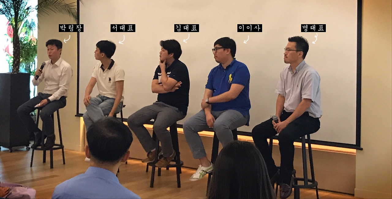 박팀장: 아 내 소개 빼먹었네. 오늘의 모더레이터이자 KB인베스트먼트의 박덕규라 한다. 핀테크 쪽에 투자를 열심히 하고 있는 사람이다.