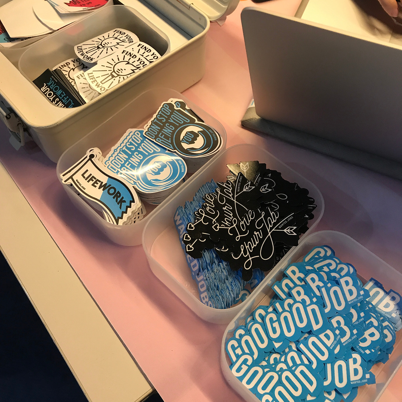 이번 행사에서는 처음으로 현장에 참여한 스탭들이 ‘자신의 직무’와 ‘무엇이든 물어보세요!’라고 적힌 스티커를 붙이고 다녔습니다. 런닝맨의 이름표를 차용한 아이디어였는데, 궁금한 게 있으신 참가자가 좀 더 편안하게 다가와서 이야기를 하게 하자는 의도였어요. 원티드는 계속 참가자가 어떻게 하면 더 행사를 즐겁고 알차게 즐길 수 있을까 고민하고 있습니다.