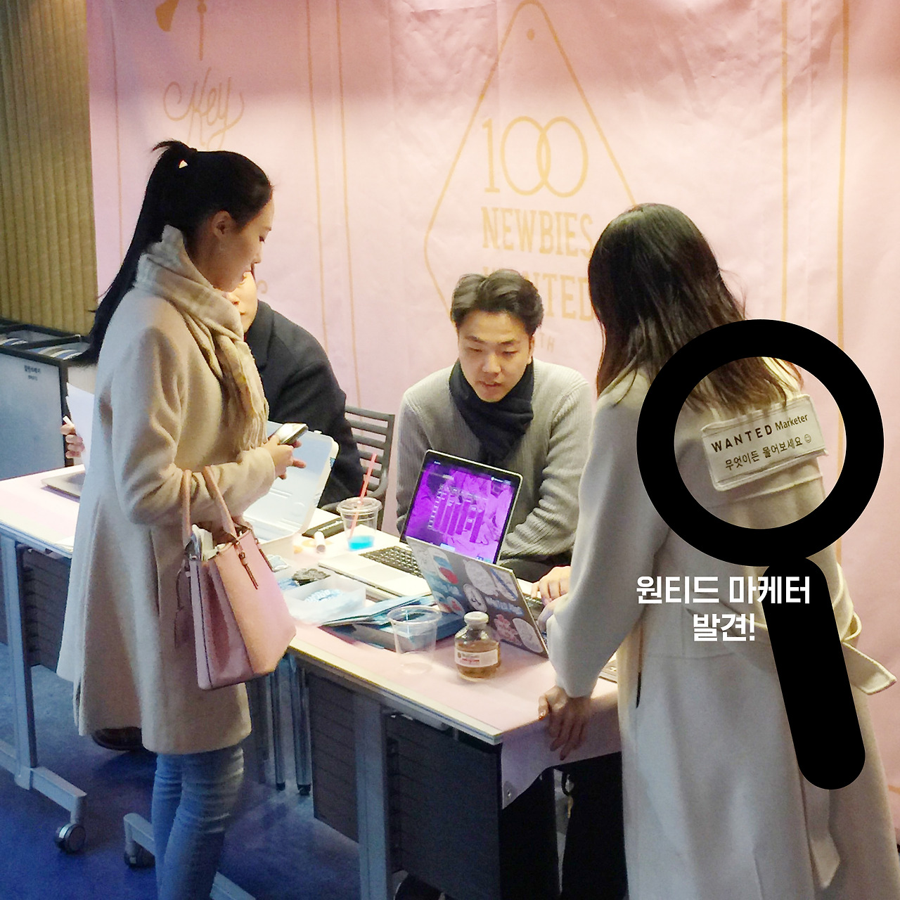 이런 대내외적인 니즈에 착안하여 ‘100명’이라는 상징적인 숫자를 내걸고 현재 원티드에 올라와 있는 신입 포지션과 신입 구직자를 매칭할 수 있는 포문을 연 것이 이번의 <100명의 신입사원을 찾습니다> 리크루팅 행사입니다. 신입을 타깃으로 한 오프라인 행사는 처음이었고, 경력직을 대상으로 한 행사와는 다른 방식으로 준비해야겠다는 생각을 했어요. (하지만 대졸 신입뿐만 아니라 직장생활 경험은 있지만 직무 전환을 원하는 모든 구직자를 비롯, 참여기업에 관심 있는 누구나 참가신청할 수 있었습니다.)