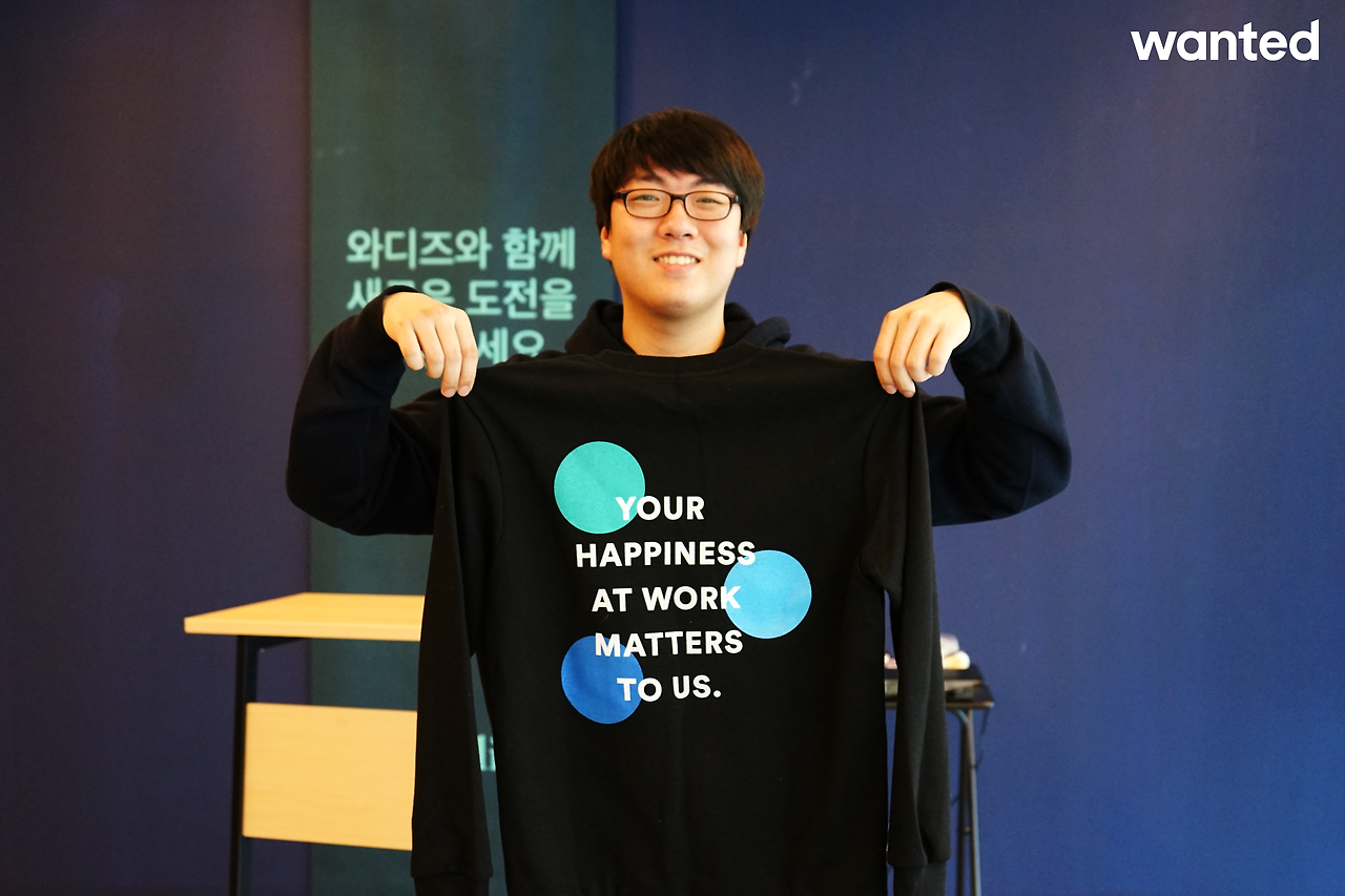 두 개의 면접을 봤어요. 하나는 기술적인 것을 물어보는 기술면접이었고 다른 하나는 대표이사 면접이었는데, 대표이사 면접에서 특이한 걸 많이 물어봤던 기억이 나요. 살면서 가장 힘들었던 경험에 대해 이야기해봐라, 어떨 때 행복했냐 등등. ‘와디즈다움’이라는 키워드를 중요하게 생각하는 것 같다고 느꼈어요. 아니나 다를까 들어와 보니 생각이 비슷한 사람들이 모여있다는 게 느껴지더라고요. 회사 사람들과 이야기가 굉장히 잘 통해요. 또 개발자는 보통 컴퓨터나 게임이 취미인 경우가 많은데, 저는 그런 점에서 개발자 답지 않은 편이지만 대신 커뮤니케이션 능력이 좋다고 생각해요. 일을 하다 오해가 생기면 “어떤 부분이 맘에 안 드는지 얘기해 주세요"라고 먼저 말하거든요. 그런 성향을 강점을 봐준 것 같기도 합니다.