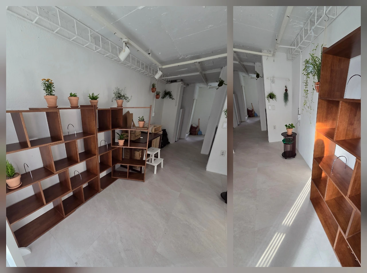 나무향 가득 나는 가구와 초록초록 푸릇한 식물과 책이 어우러지는 공간을 만들고자 화훼단지를 찾았다.