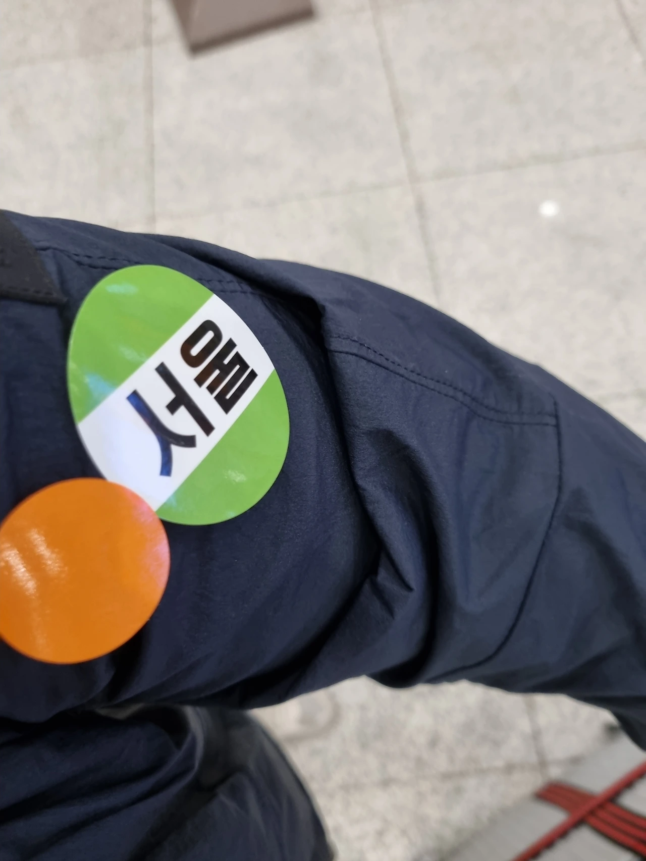 저 목걸이를 체크인 할 때 주는데, 인천도착해서 꼭 걸고 있어야함, 그래야 격리 면제 스티커를 붙여줌