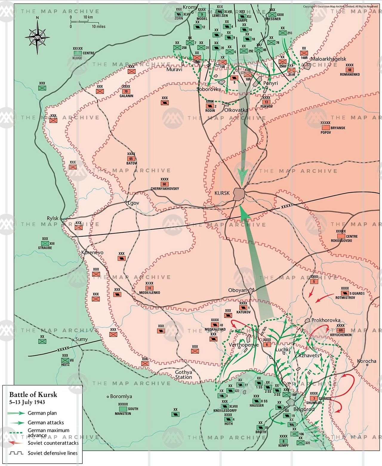 독일군 90만, 소련군 100만 이상, 그러나 뭣보다도 대량의 탱크가 동원된, 사상 최대의 기갑전! 신형에 속하는 5호 전차 판테르(표범)에다, 엘레판트 같은 초 괴물 '탱크 디스트로이어'가 처음 실전에 참가한 것도 이 전투다.