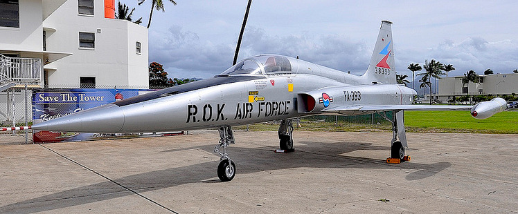 *우리 한국 공군의 F-5A 후리덤 파이터, 자유의 투사. 공기 취입구에 태극마크가 보인다. 출처: pacificaviationmuseum.org