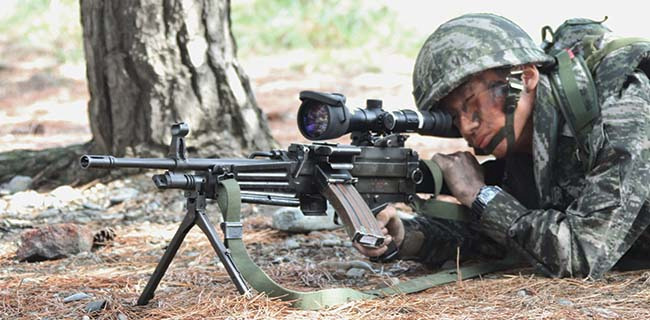 *분대를 지원하는 분대 지원 경기관총 K3, 이거 실탄까지 갖추면 거의 10킬로에 육박한다고 한다. 출처: sadefensejournal.com