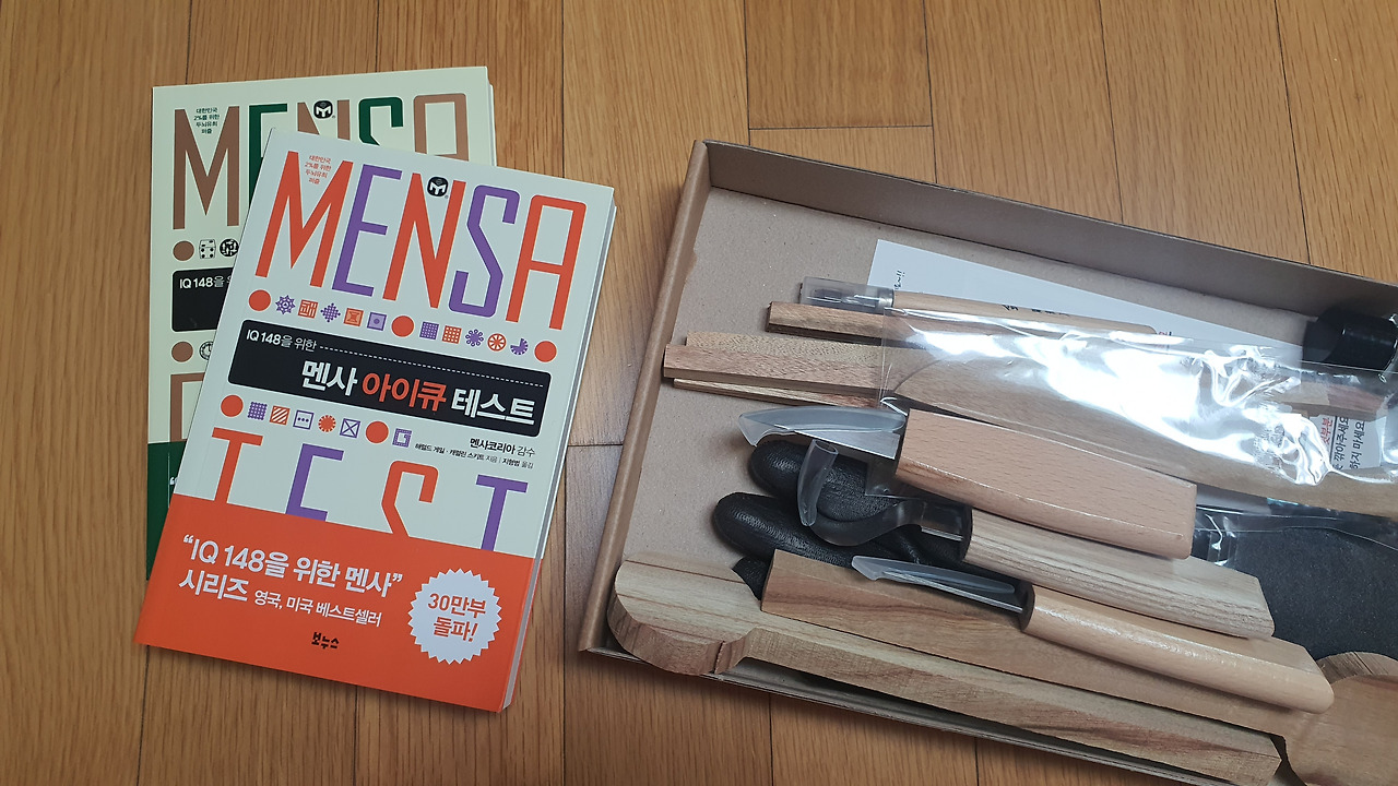 우드 카빙 : 손으로 무언가를 만지작거리고 있으면 잡생각이 사라지지 않을까 싶었다. 그림이나 십자수 같은 덴 영 소질이 없기도 했고, 마침, 아빠랑 해 보면 좋을 것 같아서 우드 카빙을 골랐다. 생각보다 힘이 많이 들어갔고, 가루가 엄청나게 날렸다. 하다 말았는데, 다시 할 엄두가 안 난다.