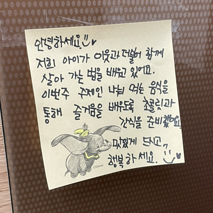 반나절의 외출을 마치고 다시 엘리베이터를 부르는 버튼을 눌렀다. 문이 열리자 이번엔, 아침에는 없던 간식 꾸러미들이 수북이 쌓여 있는 게 아니겠는가. ‘나눠주어 고맙습니다.’라는 짧은 쪽지부터 한 페이지에 달하는 편지까지, 투명한 간식 봉지 안에 함께 담긴 채 말이다. 우리 라인의 나눔 릴레이는 주말이 지난 월요일까지도 이어졌다. 딱딱하고 네모난 철제 공간이 몽글몽글한 손길들로 채워진, 정말 대단한 3일이었다. 그리고 나는 확신할 수 있었다. 어떤 이웃이 되어야 하는지.