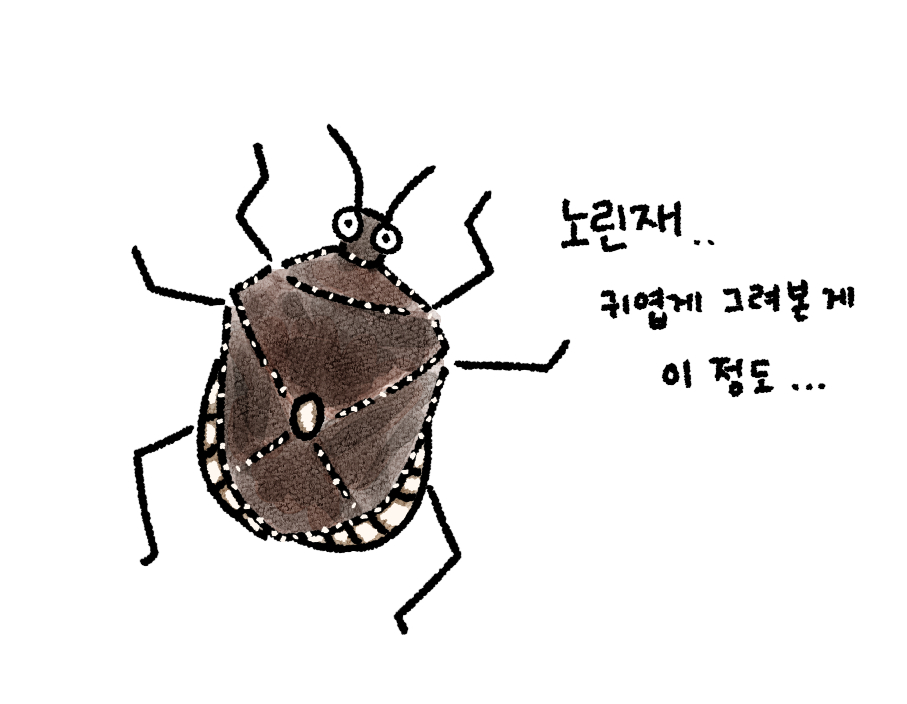 자주 보면 정든다더니 정말 정이 든 걸까. 베란다 타일에 배를 보이며 떨어져 있는 수명을 다한 무당벌레를 빗자루로 쓸어 보내면서 잘 가라고 나지막이 인사를 건넨 적 있었다. 그러더니 급기야는 오늘 오후처럼 노린재 뒤꽁무니를 쫓는 날까지 생기고 말았다. 일면식 하나 없는 어느 곤충을 보고 45분이라는 시간을 순식간에 흘려보낸 이유는 무엇이었을까. 아이에 대한 사랑으로 혐오를 극복했다고 하기엔 조금 억지스러운 면이 있다. 싫어하는 것조차 싫을 정도로 싫어했기 때문에, 아이 취향에 맞춘다는 것 말고 강력한 내적 동기가 있어야 한다고 생각했다. 고민 끝에 머릿속에서 찾아낸 단어는 ‘연민’이었다.