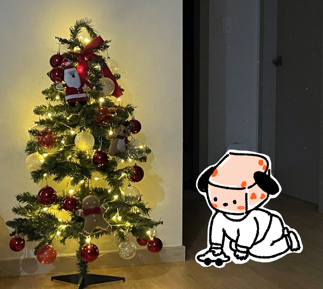 남편이 아이를 입출구 쪽으로 안전하게 몰아준 덕분에 서두르지 않고 무사히 결제를 마칠 수 있었다. 집에 돌아와 트리를 가지마다 힘주어 펴고 장식을 걸었다. 몇 번이고 몸을 뒤로 뉘었다 바로 했다 하면서 트리를 완성했다. 셋이 함께 꾸미는 첫 번째 트리였으니 조금이라도 풍성해 보였으면 하는 바람이었다.