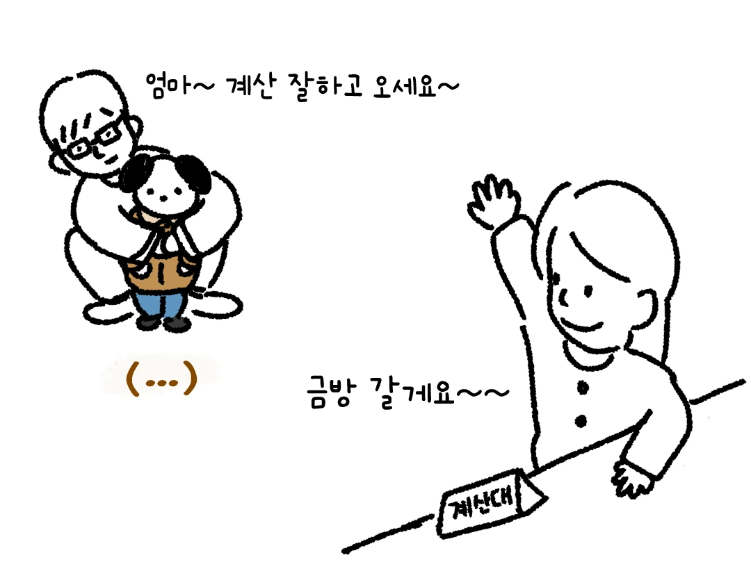 “어어, 이건 깨지기 쉬워. 다칠 수 있으니까 우리 저쪽으로 가 있자.” 남편은 아이 손을 잡고 자리를 뜨며 말했다.