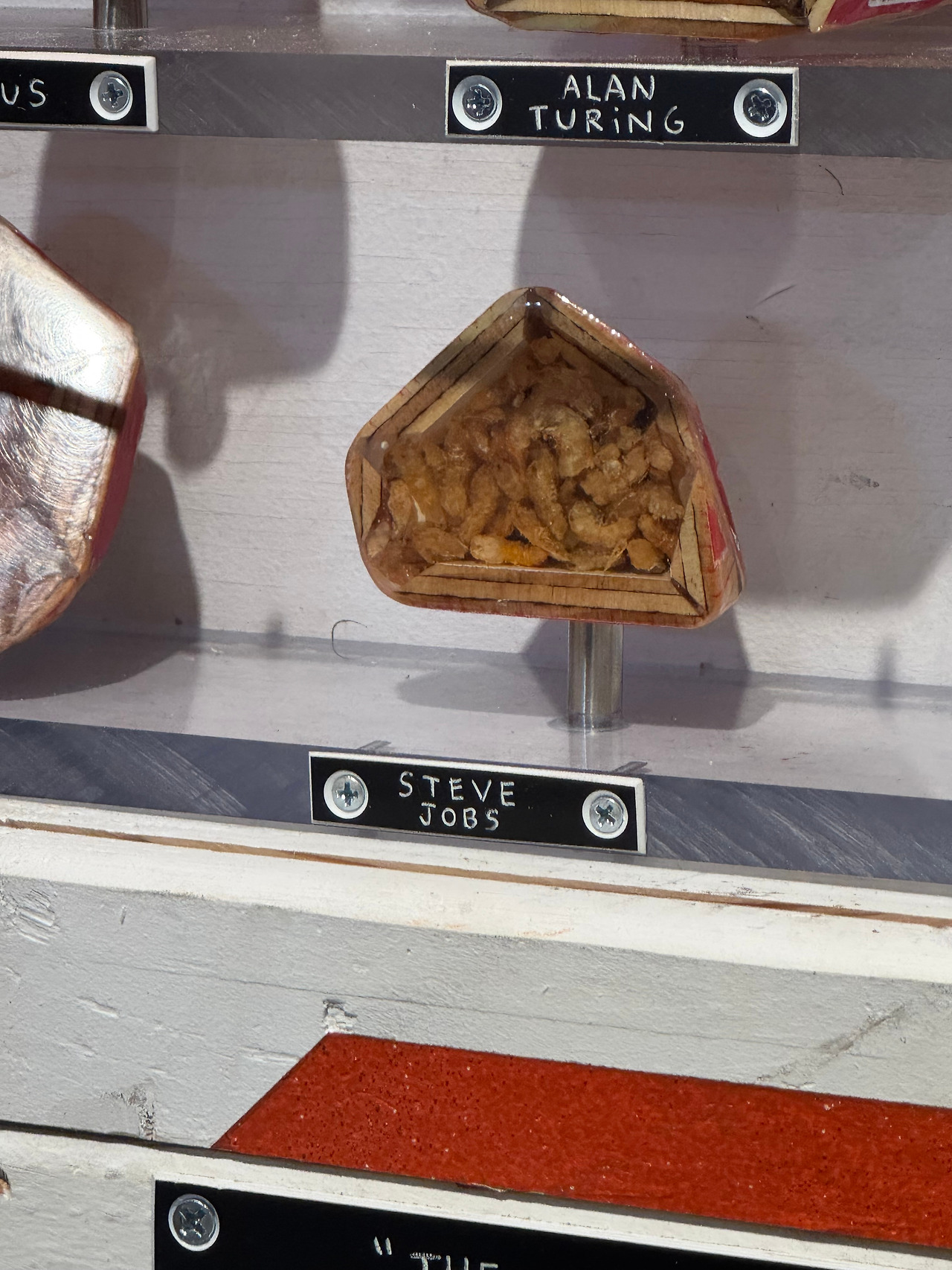 마치 육류처럼 가공된 듯한 조각들이 진열되어 있는데, 그것들은 한때 '있었던 것들'처럼 보이지만 정확히 무엇이었는지는 알 수 없다.