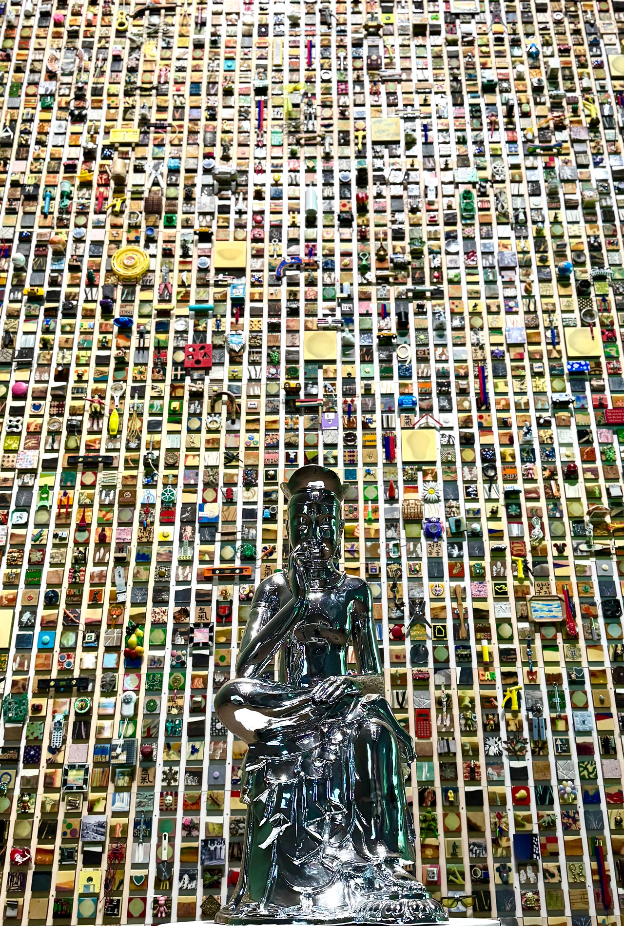 가장 먼저 시선을 끄는 건 부처의 형상이 아니라, 그것을 이루고 있는 수많은 3인치 조각들이다.