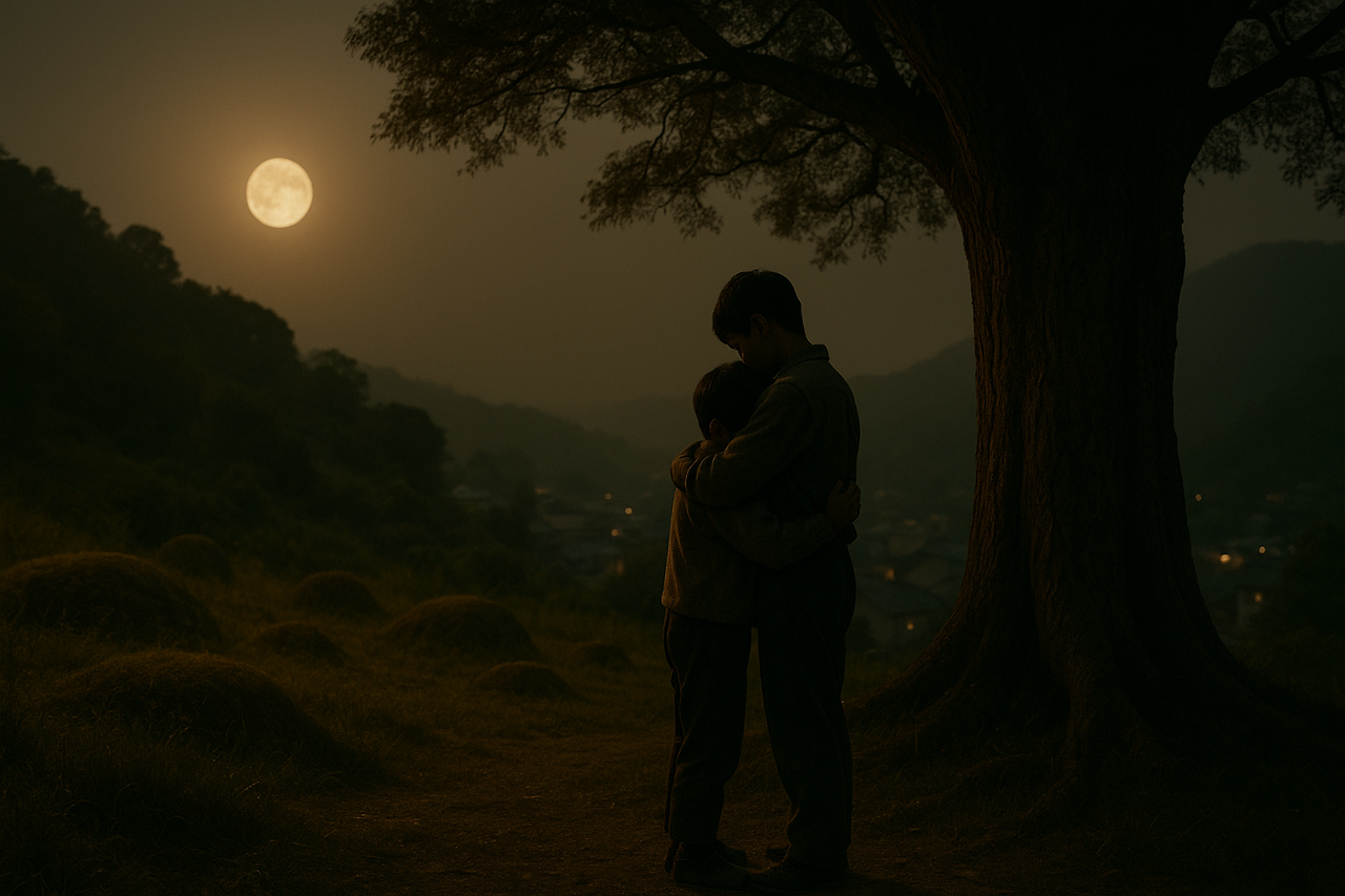 달빛 아래, 귀뚜라미 소리가 조용히 형제를 감싸 안았다.