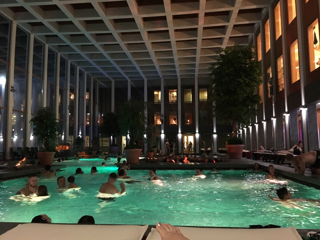 걸어다니면서 마주치는 것보다는 풀에 들어가있는게 마음의 안정을 찾기에 좋다. 온천에 동양인이 적은 편이라 나 또한 사람들이 자주 쳐다보는 대상이라 그럴 수도 있겠다. 풀에 들어가 얼굴만 쏙 내밀고 주위를 둘러본다. 커플도 많이 보이고, 가족들끼리도 많이 온다. 아빠, 엄마, 아들도 함께 오고, 남녀친구들끼리도 함께 온천을 즐긴다. 그곳에서 나는 독일어학원 선생님을 봤는데 선생님은 아내분과 아내분 친구와 같이 오신 것 같았다.