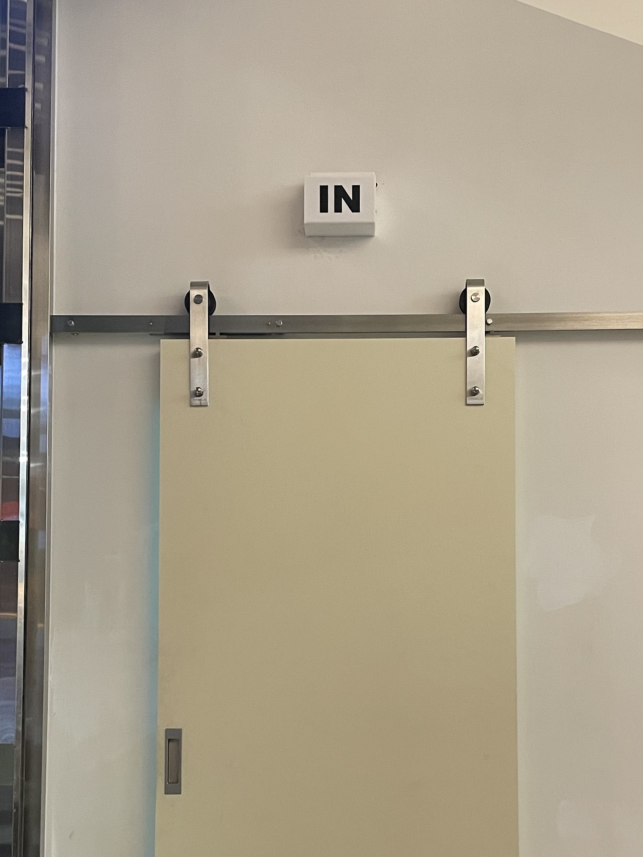 바로 화장실 바로 위 "IN" 표시가 밝게 빛났다.
