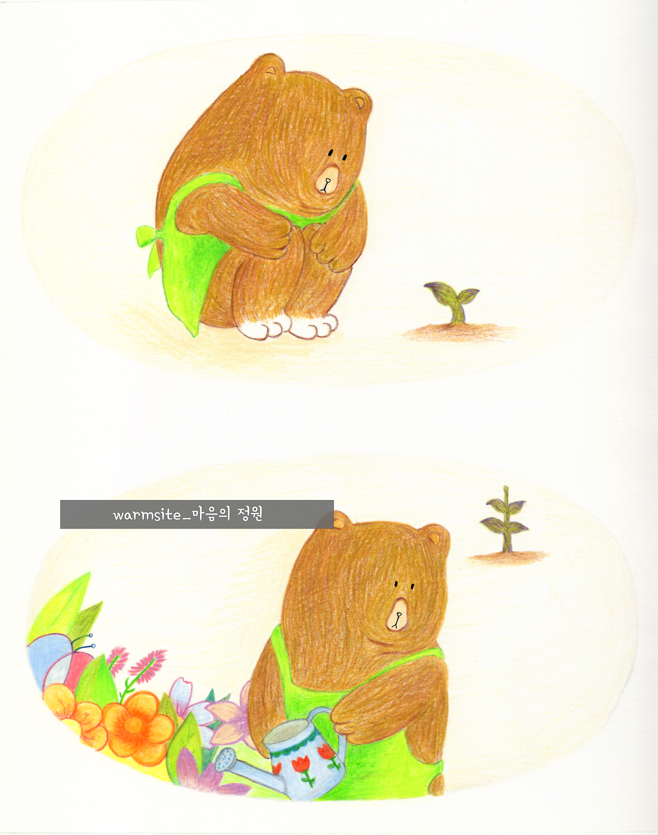 과연 곰아저씨는 혼자서도 쑥쑥 커나가는 이 새싹을 계속 모르는 척할 수 있을까?