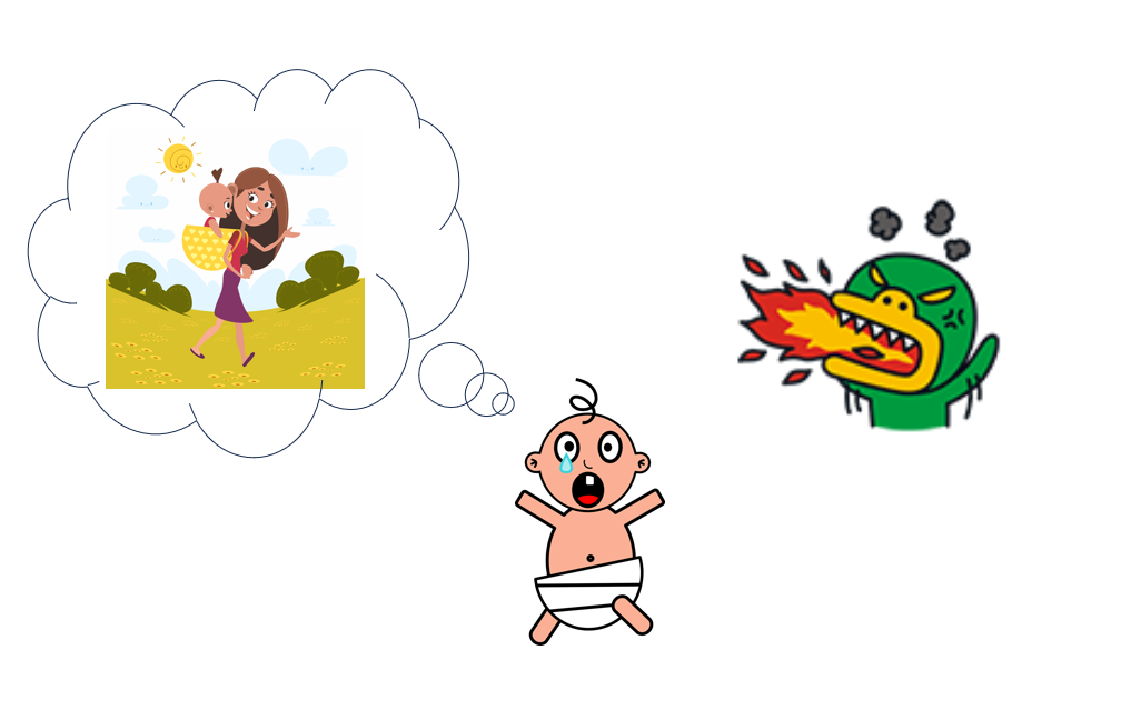 이해를 돕기 위해서 예시를 들어볼게요. 적당히 좋은 엄마에게 따뜻한 관심을 받아왔던 아이가 엄마에게 혼나는 순간을 살펴보려 합니다. 아이 입장에서 현재 자신에게 화를 내는 엄마가 그 순간에는 매우 나쁜 사람처럼 느껴질 수도 있겠지만, 아이는 다음과 같이 생각하면서 자신의 불안감을 달래줄 수 있어요.