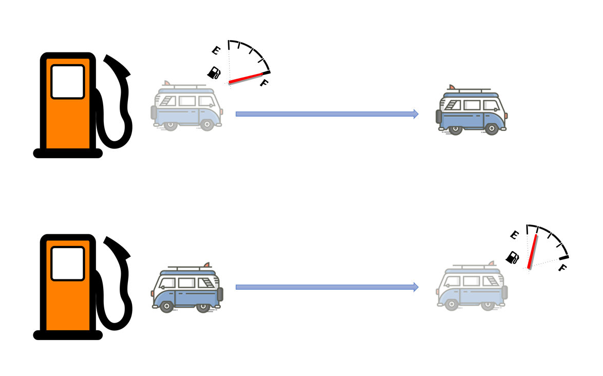자동차는 연료가 떨어지면 주유소를 방문해서 연료를 충전하고, 연료가 충분해진 자동차는 다시 여행을 떠납니다. 주유소는 엄마, 아이는 자동차, 연료는 사랑에 비유할 수 있습니다.