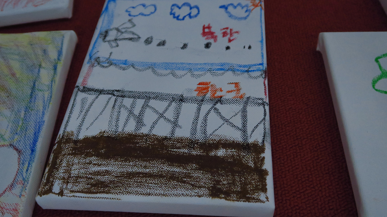 북한과 한국을 글씨로 적은 그림이 기억에 남네요.