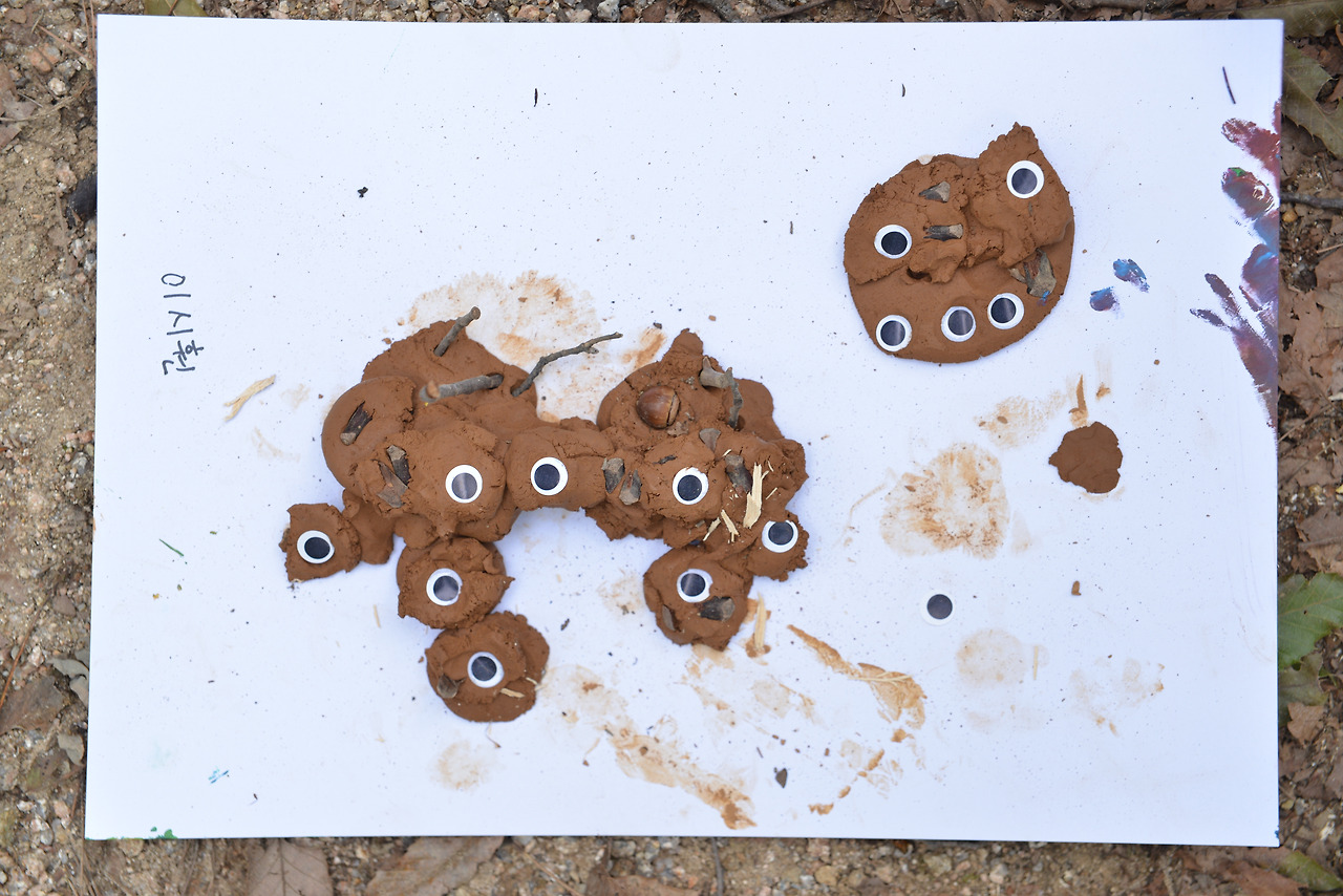 아이들과 나무와 나뭇잎으로 신나게 놀았어요.