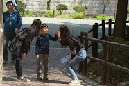 걷기 힘들어 늦어지는 친구도 있습니다.