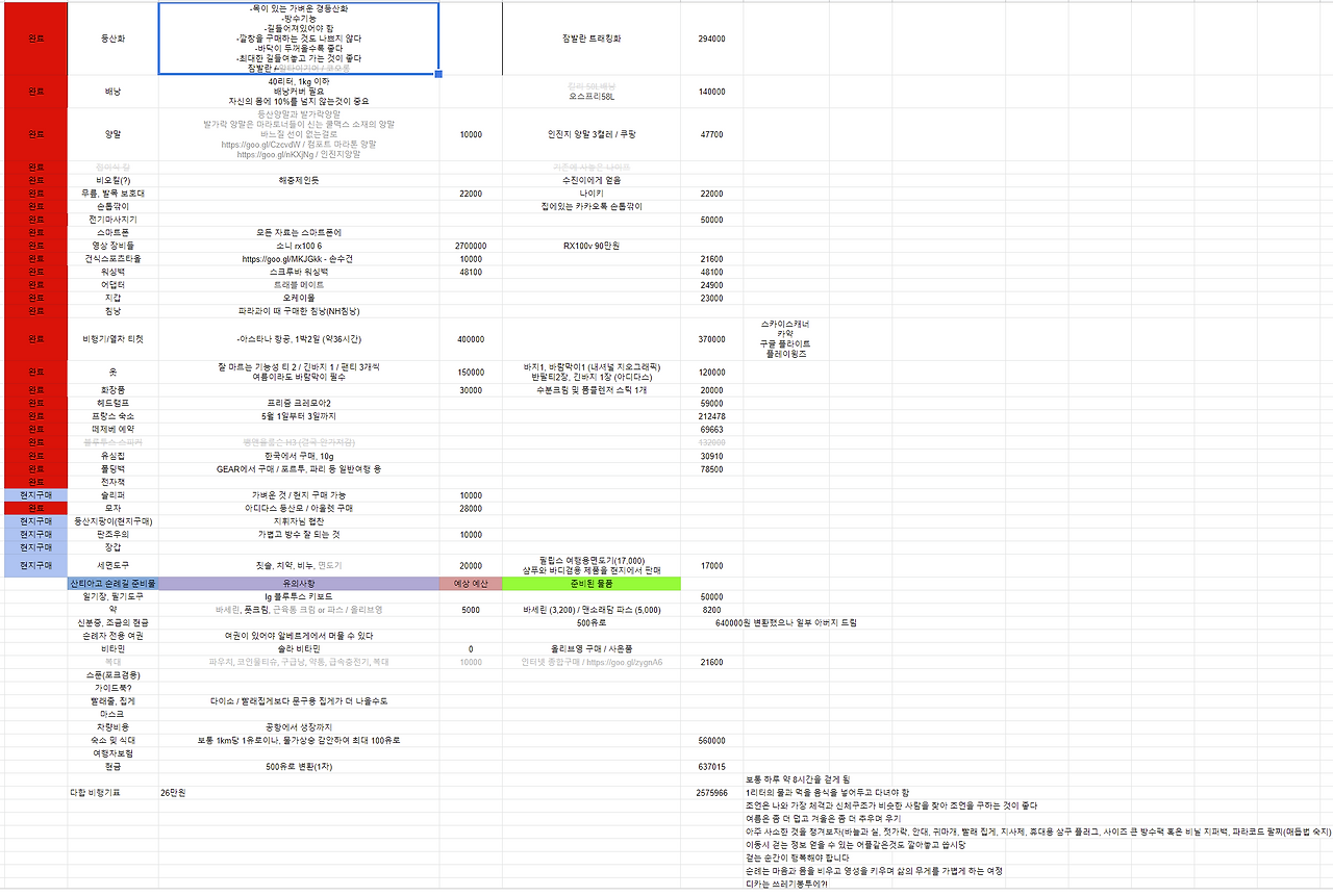 최종 약 40여 가지의 물품을 구매 혹은 대여(지인에게)했다.