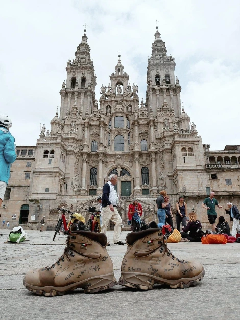 산티아고에서 찍은 사진. 신발에는 함께 걸었던 친구들의 사인을 받았다. 여러분들도 이렇게.